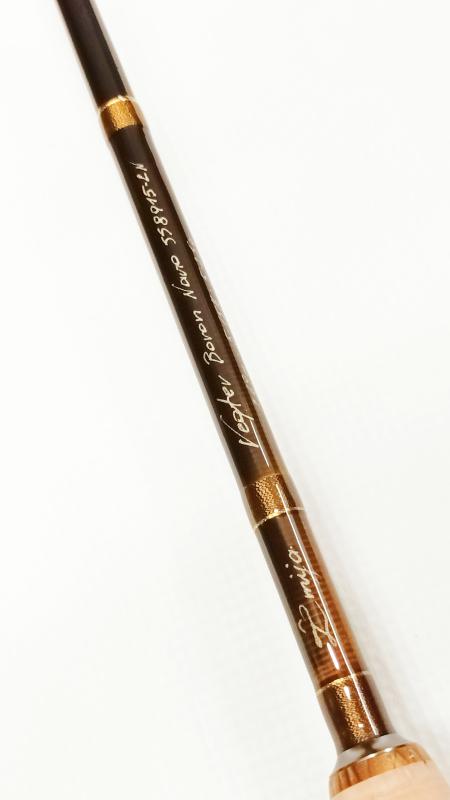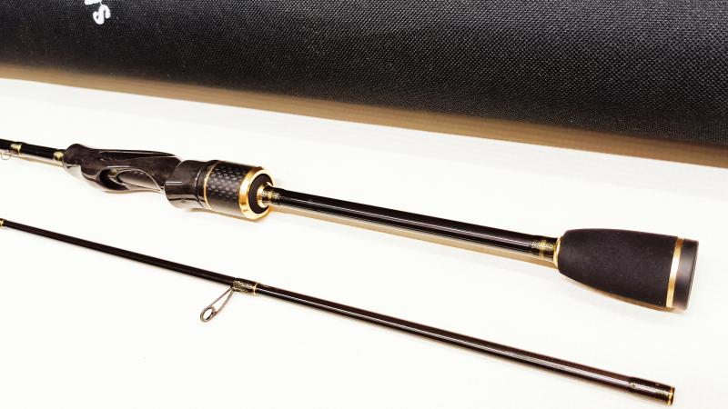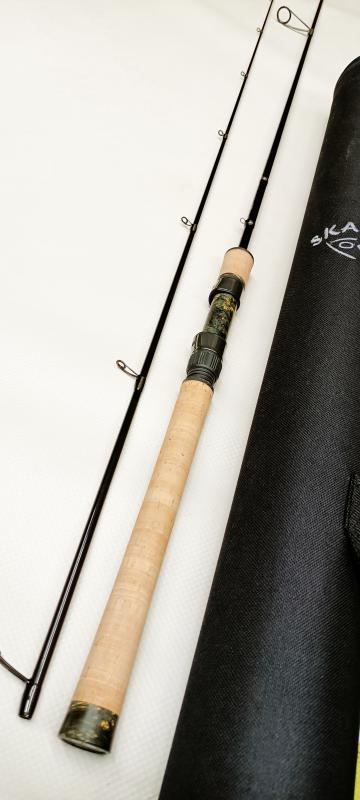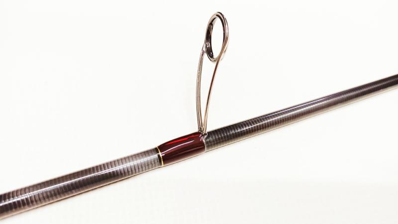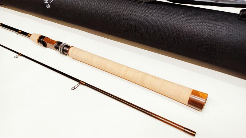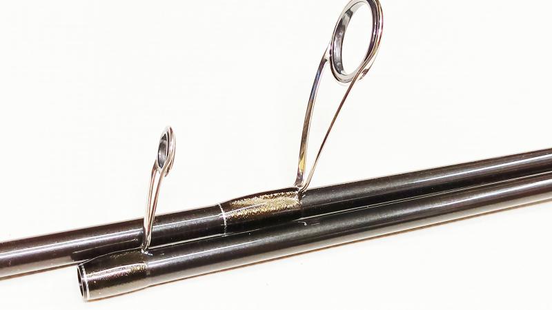 Kijek został uzbrojony w krótką dzieloną rękojeść z pianiki Matagi, uchwyt Fuji SKSS16 z insertem z carbonu, przelotki Fuji Torzite T2 i biżuteria w kolorze złotym.