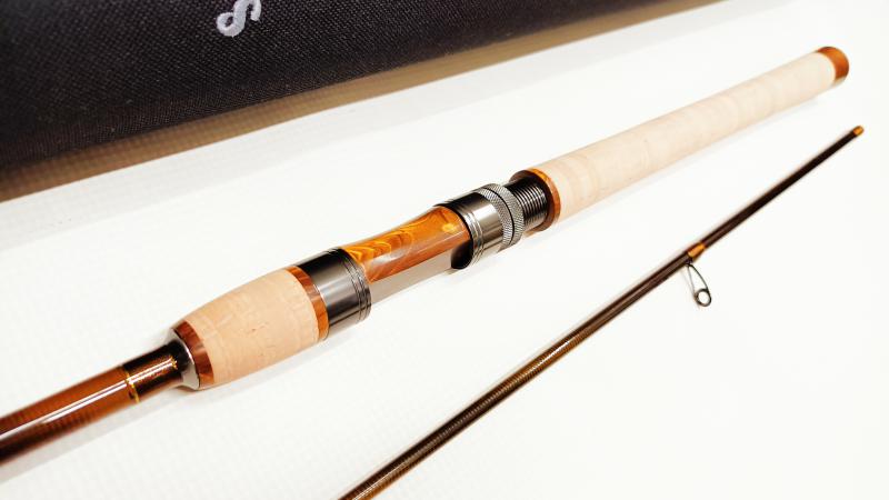 Kijek został uzbrojony w pełną rękojeśc z naturalnego korka portugalskiego bardzo dobrej jakości, wstawki z drewna stabilizowanego, uchwyt Fuji DPS 17 GM z insertem z drewna, przelotki Fuji Torzite T2.