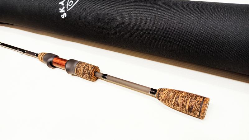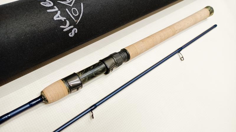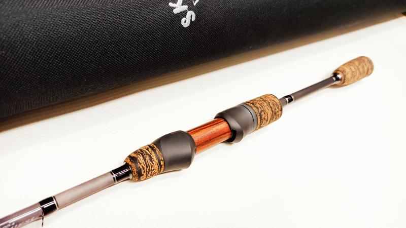 Kijek został uzbrojony w dzielona rękojeść z korka burnt storm, wstawki z drewna stabilizowanego, uchwyt Fuji DPS 17 GM z insertem drewnianym, przelotki Fuji Torzite.