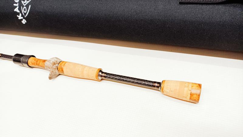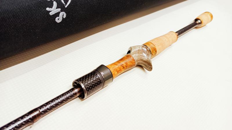 Kijek został uzbrojony w castingowy uchwyt Fuji KSKTS16, rękojeść z korka portugalskiego klasy flor z drewnianym wykończeniem, taliowany insert uchwytu również z drewna stabilizowanego, zabudowa nakrętki z carbonu.. Przelotki Fuji Torzite T2 w układzie spiralnym.