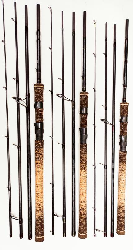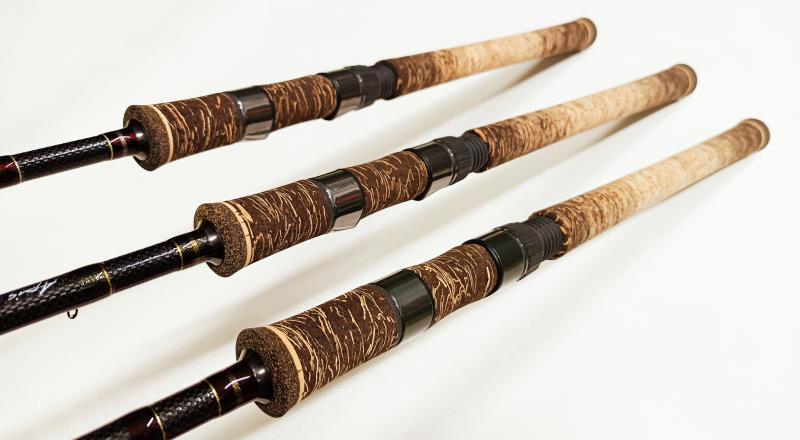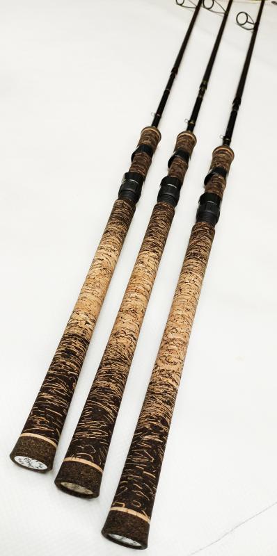Wszystkie trzy egzemplarze zostały uzbrojone praktycznie tak samo jeżeli chodzi o rękojeść. Pełna z korka ( mix różnego rodzaju korka i korkogumy z płynnym przejściem kolorystycznym), ucwyty Fuji DPS GM 17 i 18 w przypadku najmocniejszego modelu. Inserty uchwytów zrobione z korka. Przelotki Fuji Sic Slim w ramce GM.