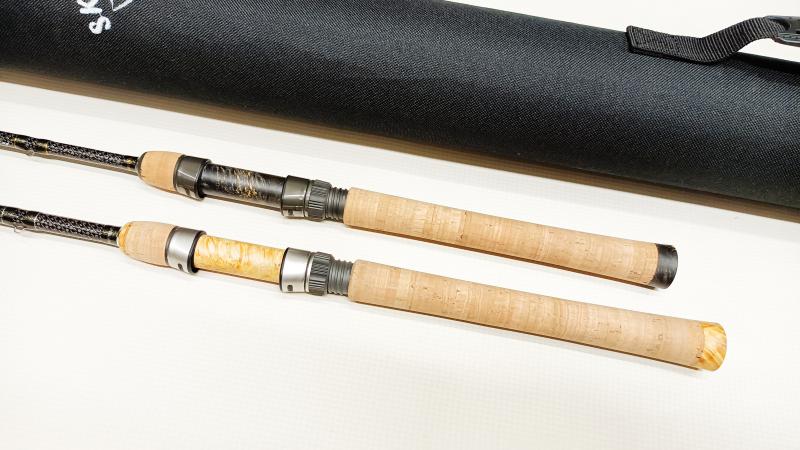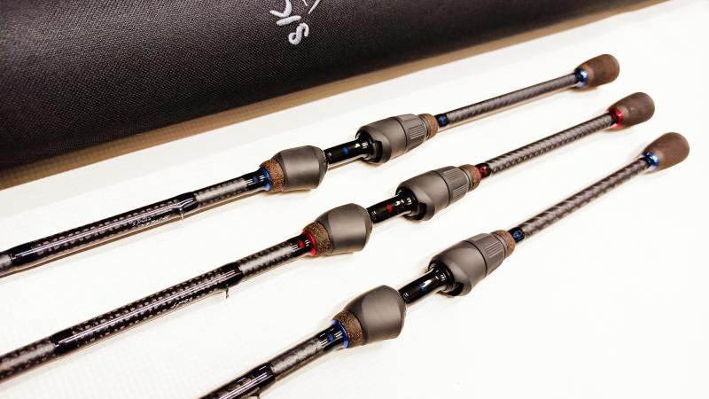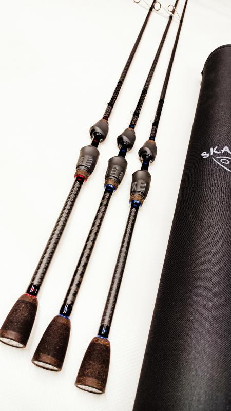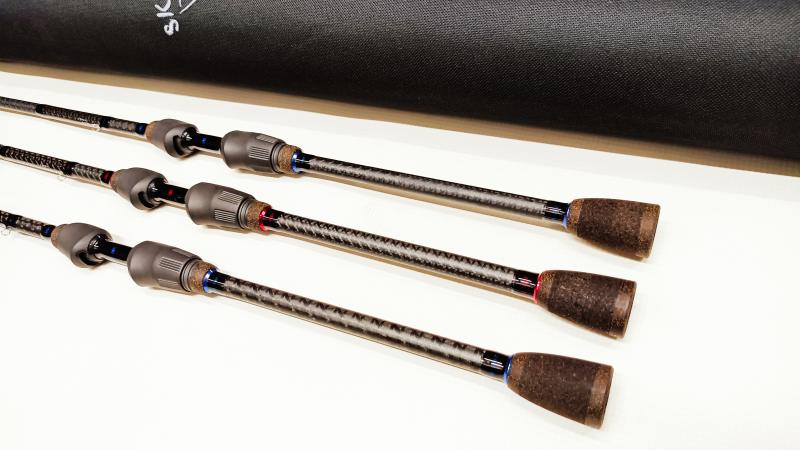 Wszystkie trzy egzemplarze uzbrojone niemal identycznie. Uchwyt Fuji SKSS17 bez insertów, Subtelne wykończenia z korka burnt i korkogumy, oraz przelotki Fuji Torzite.
