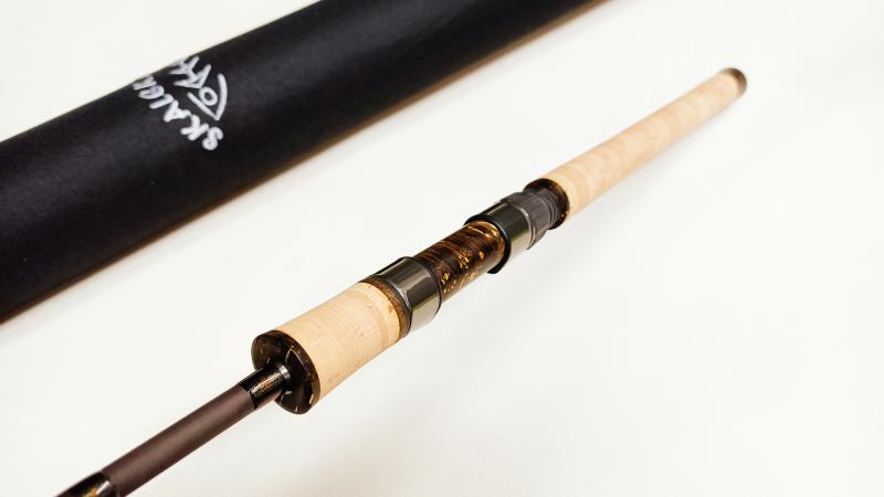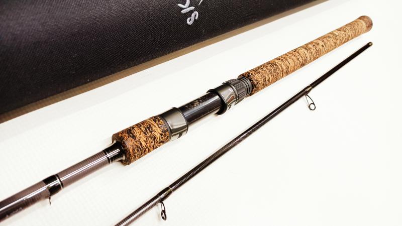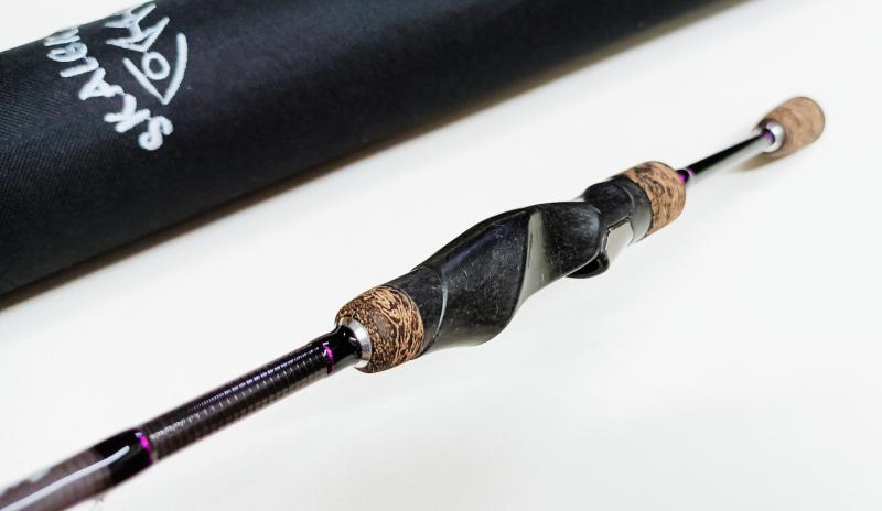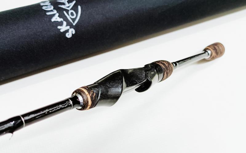 Kijek ten dostał dzieloną rękojeść z korka Kaktus 2, uchwyt Fuji SKSS 16 z insertem z  egzotycznego drewna stabilizowanego, przelotki Fuji Torzite.