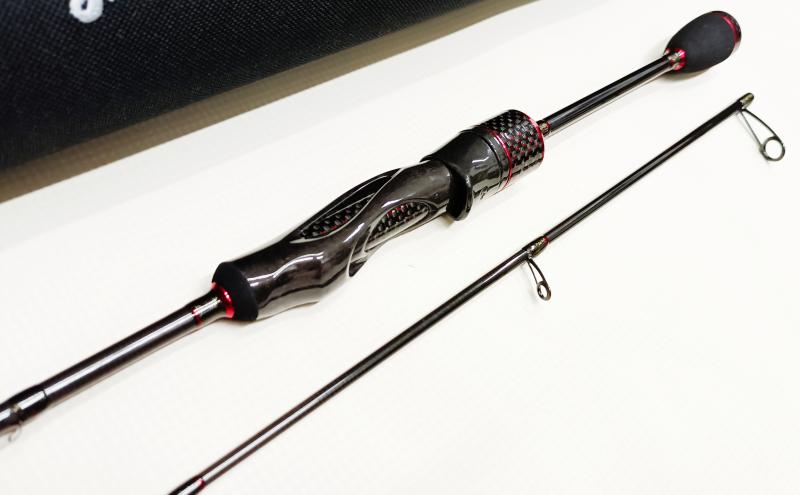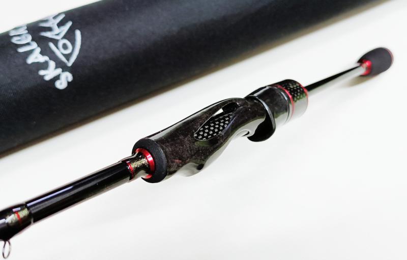 Kijek został uzbrojony w krótka lekką rękojeść . Uchwyt carbonowy AT Apex 16 ULH CCT, insert i zabudowa nakrętki z carbonu z wyplataną czerwoną nicią, wykończenia z pianki , przelotki Fuji Torzite.