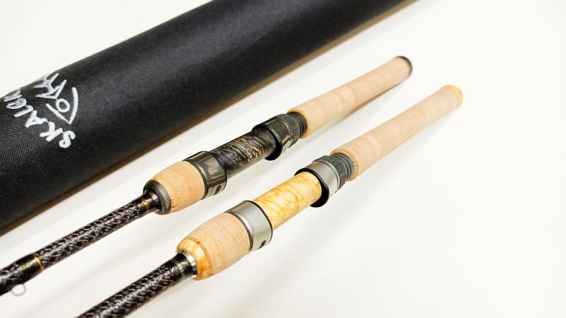 Kijek ten dostał dzieloną rękojeść z korka kaktus 2 z elementami drewna stabilizowanego, uchwyt FRGSS z drewnianym insertem opartym na carbonie. Całości dopełniają przelotki Fuji Torzite.