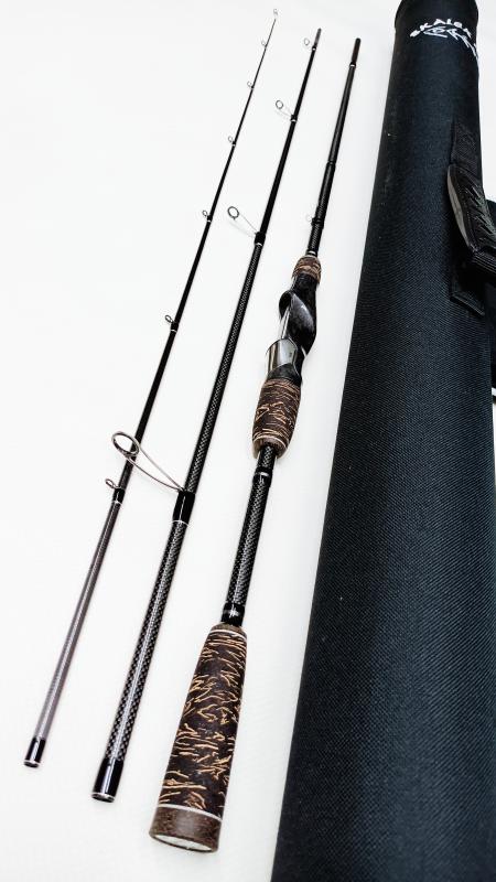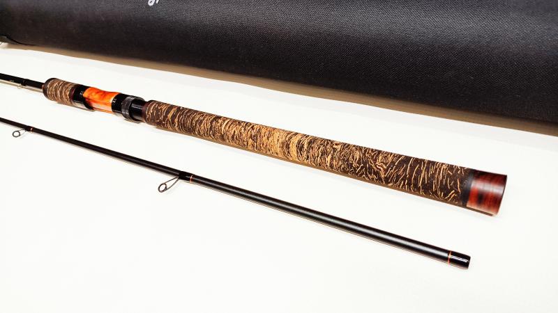 Kijek dostał pełną rękojeść z korka kaktus 2 i black tiger H, oraz wstawki z drewna egzotycznego. Uchwyt metalowy z drewnem BRS11-229 B, przelotki Fuji Titanium Sic Slim.