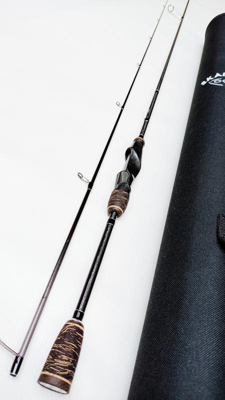 Drugi o oczko mocniejszy na blanku SNT6108-1N. Jeden skład o długości 2,09m, moc 8lb c.w 3-13g. Ostry i cięty o nieco bardziej szczytowej akcji. Wybitnie pod jiga ( główki 3-12g) oraz pod wobki twitchingowe. Ten radzi sobie już z przyłowem sandaczy.