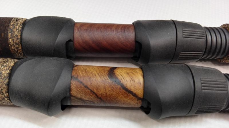 Kijki ubrane zostały w uchwyty Fuji SKSS, inserty z drewna , przelotki Fuji Torzite, korek tygrys w tym delikatniejszym i burnt w mocniejszym.