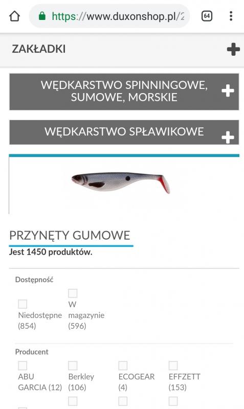 Wojtek14 Opublikowano 28 Lutego 2019 Zgłoś Udostępnij Opublikowano 28 Lutego 2019 Duxon chyba wyprzedaje cały asortyment spinningowy, jako sklep karpiowy jest to jeden z wiekszych sklepów w PL. Wystarczy w filtrach zaznaczyć "dostepne " i już nam pokazuje tylko te produkty które mają na stanie. Ja ostatnio zamówiłem jakieś gumy po poście kolegi z poprzedniej strony i wszystko doszło jak należy. Cytuj Odnośnik do komentarza Udostępnij na innych stronach Więcej opcji udostępniania...