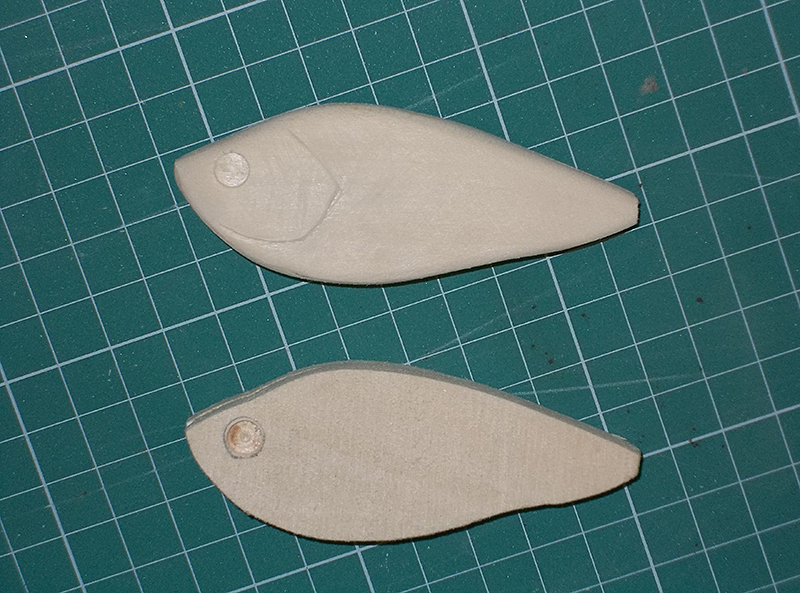joker Opublikowano 26 Października 2013 Autor Zgłoś Udostępnij Opublikowano 26 Października 2013 (edytowane) Część IV - końcowa obróbka kształtki. Robienie oczodołu odbywa się w kilku etapach, jest to wynik dotychczasowych moich prób z tym elementem woblera.Kiedyś pisałem o tym ile się z tym muszę urobić, aby jako tako wyglądało. Dzisiaj robię tak, w zasadzie z każdym woblerem i jest to praktyczny i prosty sposób. 1. wyznaczenie oka na płaskiej jeszcze kształtce, ja używam szablonu2. frezowanie oczodołu3. w trakcie obróbki otwór ten będzie częściowo ścinany przy modelowaniu "głowy"4. wyrównanie dna oczodołu. Frezy mogą zostawiać część materiału i należy go usunąć np. nożykiem5. fazowanie krawędzi oczodołu przy pomocy okrągłego "pilnika" Każdy etap jest na dalszych zdjęciach. Nie wyodrębniłem robienia oka z całego procesu. Dzięki temu cała obróbka kształtki jest czytelna. Edytowane 26 Października 2013 przez joker Odnośnik do komentarza Udostępnij na innych stronach Więcej opcji udostępniania...