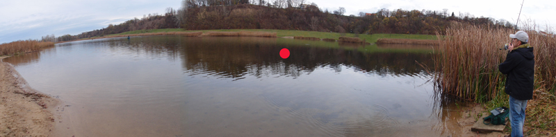 Stałem z prawej strony plaży i rzuciłem w stronę wzgórza lekko po skosie. Odpiął się jakieś 20m od brzegu. Woda jest kryształ, tam nie jest już głęboko i zielsko opadło. Sam myślałem, żeby przy flaucie i słoneczku po pływać pontonem, to może bym go wypatrzył, bo świecić się będzie od tego złota na nim  :D