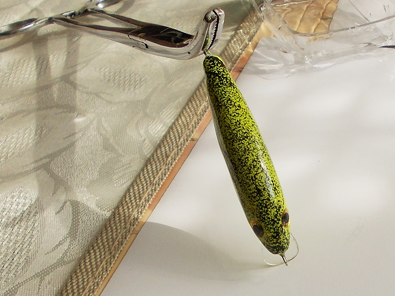joker Opublikowano 29 Czerwca 2014 Autor Zgłoś Udostępnij Opublikowano 29 Czerwca 2014 (edytowane) ...byle nie makrela, bo to mało atrakcyjne zdjęcie będzie Kapnąłem trochę envirotexu na próbę zanim suszarka stanie na stole do pracy. Maznąłem kilka wydrukowanych oczu na folii samoprzylepnej, efekt taki sobie, więc nie ma czego pokazywać. Przy okazji, żywica niezbyt dobrze łączy się z powlekanym materiałem. Ściąga się jak woda na czymś tłustym. Podejrzewam, że to co pisano o nie przywieraniu e-texu do różnych folii, którymi okleja się woblery to prawda. W każdym razie resztką pokryłem małego No Killa 5cm i jest ok. Z pewnością można tym pokryć i ciut mniejsze woblery. Tu położona jest tylko jedna warstwa na polakierowanym woblerze z mojego pudełka. Edytowane 29 Czerwca 2014 przez joker Odnośnik do komentarza Udostępnij na innych stronach Więcej opcji udostępniania...