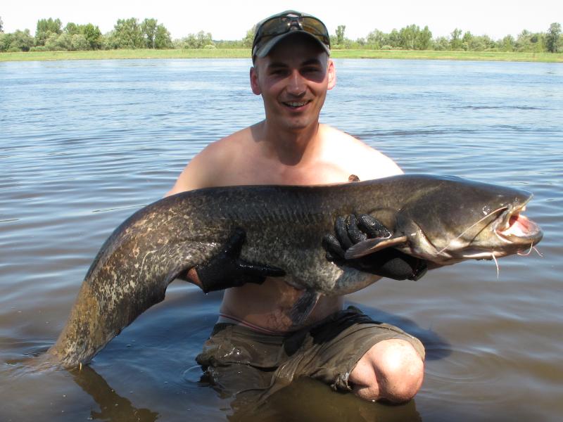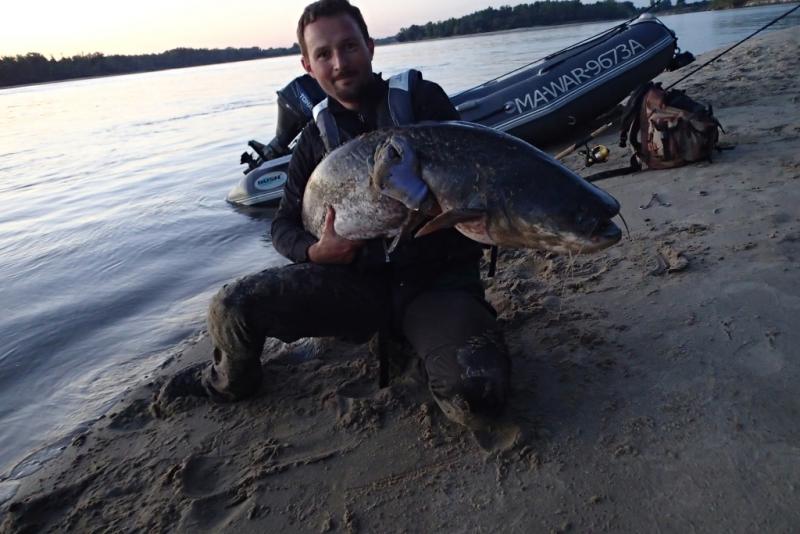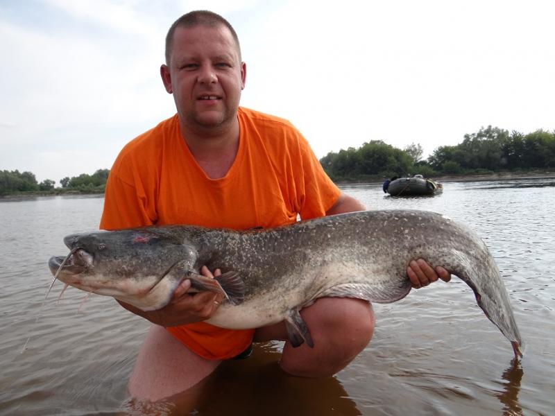 Traq Opublikowano 3 Sierpnia 2013 Zgłoś Udostępnij Opublikowano 3 Sierpnia 2013 No i udało się! Mój pierwszy samodzielnie wytrolowany, wiślany sum z własnego pontonu. I przy okazji największa ryba w życiu Plan na ten sezon był od początku taki, żeby począwszy od lipca skoncentrować się na sumowym trollingu. Pierwsze próby na zero, udało się za czwartym razem. Od początku zastanawiałem się co ja zrobię sam na tym pontonie, jak mi w końcu jakiś konkretny sum weźmie i w myślach obmyślałem taktykę, którą ręką wędkę, którą ster, czy wszystko co potrzebne mam pod ręką (rękawiczka, statyw, aparat) itp. Myślałem że nie będzie łatwo i tak też było. Sum walnął ok 20:15, na Dorado Alaska, ciągniętego wzdłuż kantu przykosy na głębokości ok 3,5 m. Skubaniec na początku murował do dna i nie chciał się ruszyć, przez moment przyszło mi nawet przez myśl, że to jednak zaczep. Do tego zgasł mi silnik i jak na złość nie chciał odpalić, albo raczej ja nie potrafiłem zrobić tego lewą ręką. Suma udało się w końcu ryszyć, dopiero jak opaliłem i kawałek odpłynąłem, końcówkę holu załatwiłem siłowo oczom nie wierząc, że mój BeastMaster może się wygiąć do tego stopnia. Przy wciąganiu suma do pontonu okazało się, że rękawiczka to bardzo przydatny przyrząd, ale lepsze byłyby dwie W sumie to miałem sporo szczęścia, bo warunki walki były idealne, a sum dobrze zapięty, na sesję zdjęciową też daleko nie trzeba było płynąć. Tylko kurcze miarki nie mogłem znaleźć, okazało się potem, że była w innej kieszeni niż zwykle Pomiar kijem wskazał ok 165 cm. Z ciekawości, ile może ważyć taka ryba? 12 Cytuj Odnośnik do komentarza Udostępnij na innych stronach Więcej opcji udostępniania...