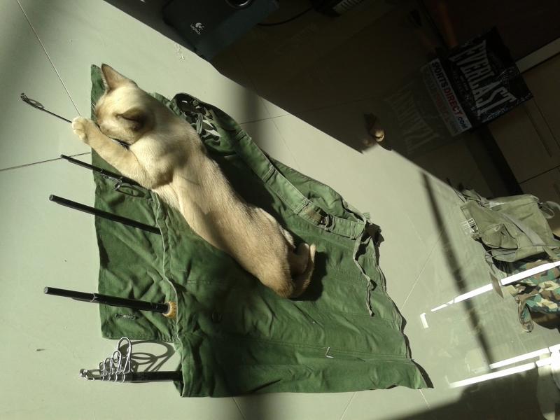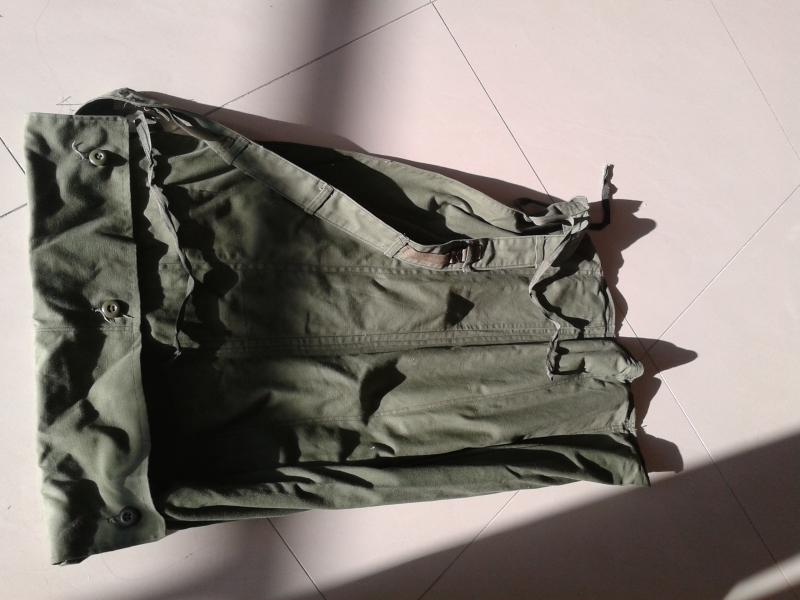 Dzięki Albert za wyrazy uznania, to dla mnie  najlepsza nagroda (dopóki nie zacznę biednych ludzi kosić na astronomiczną kasę za swoje woblery... ta mhmmm  :lol: ). Tymczasem chciałbym Wam pokazać inne wędkarskie rękodzieło -Made by Moja Mama- z rozerwanych po pijaku M65. Przewiesiłem się podobno przez płot gdzieś przy granicy z Ukrainą i poszły spodnie z PiSda. Jako że mnie szkoda takich rzeczy, zaprojektowałem sobie z nich pokrowiec na travele a matula dzielnie go uszyła. pięć czy sześć komór zapinanych na guziory z rozporka i kieszeni cargo, rączka walizkowa i przewieszka przez ramię- plus oldscholowy design  ;)