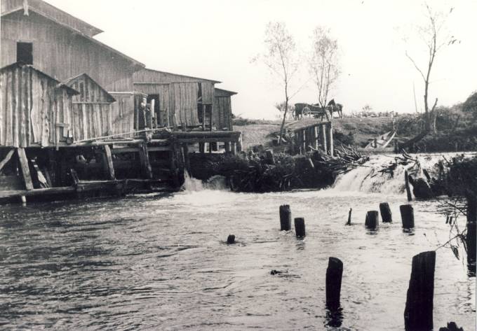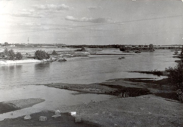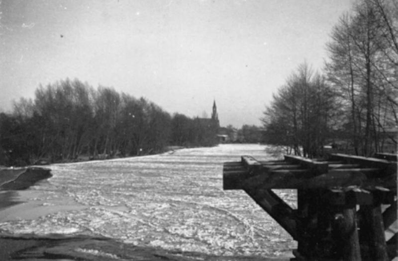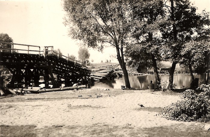 Nie wiem, czy ktoś z kolegów łowi w Osjakowie, ale teraz koło zerwanej tamy można podziwiać pale po moście. A tu jak ten most wyglądał: