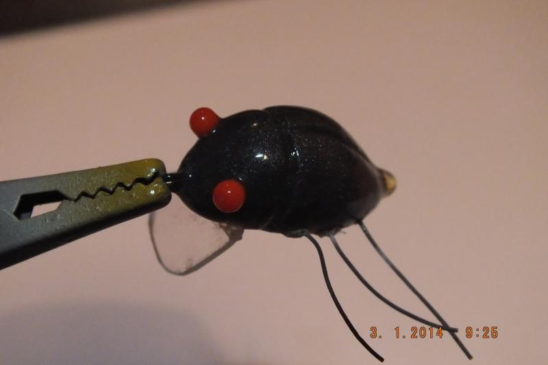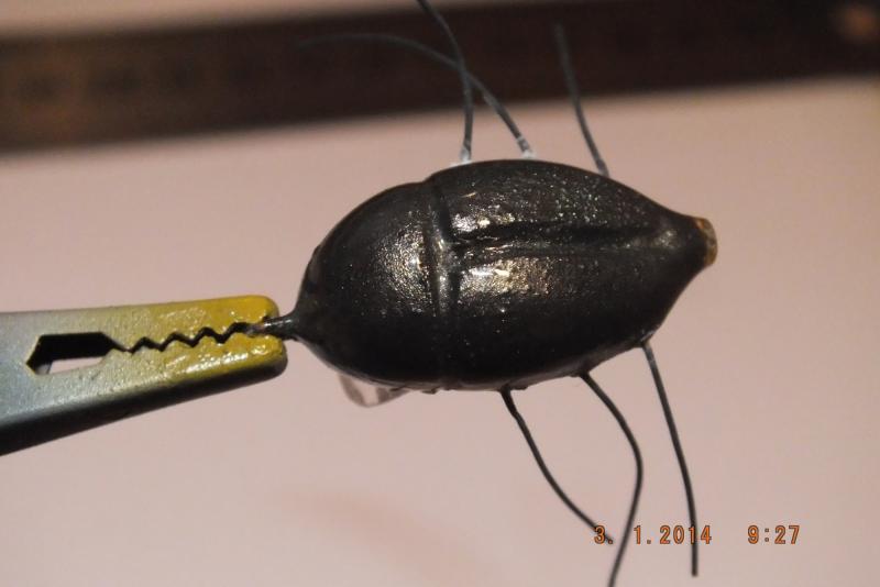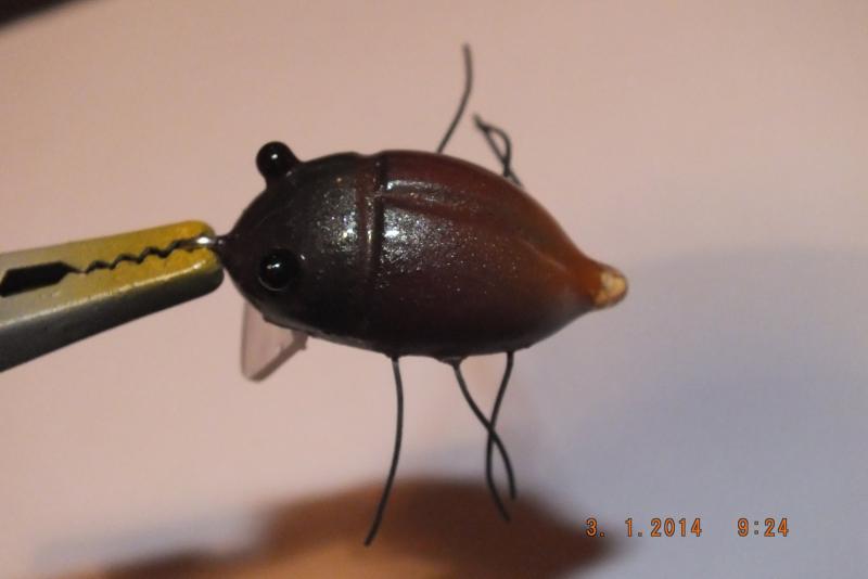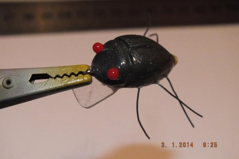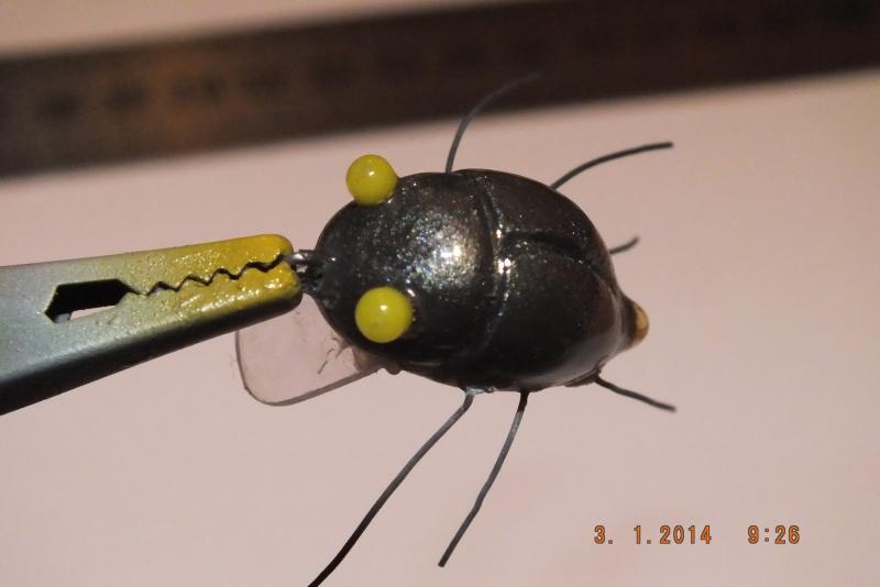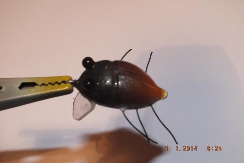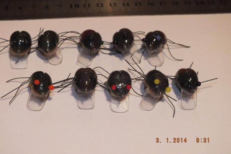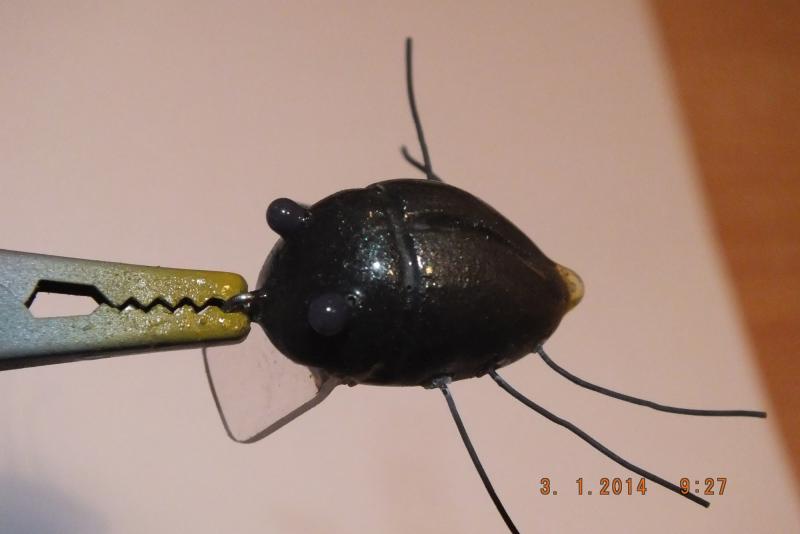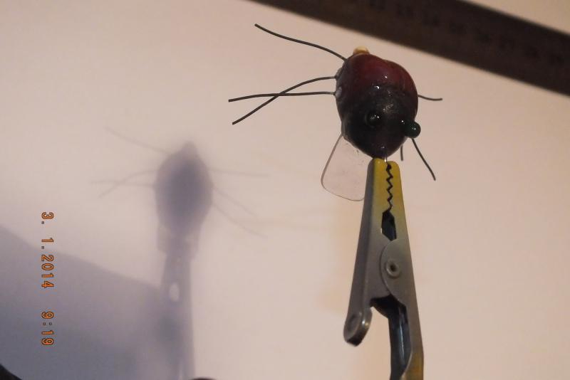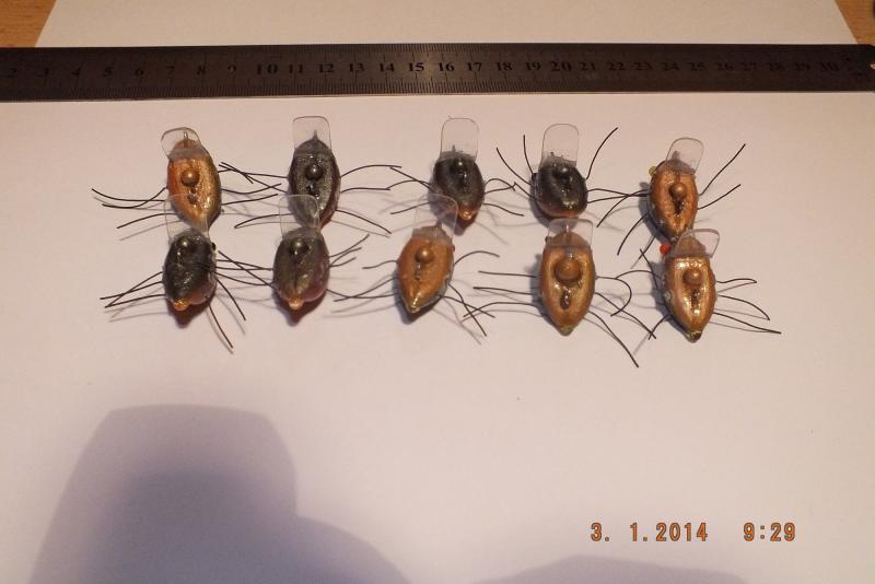 Nowa seria na rok 2014. Z powodu kończącego się lakieru, żeby nie trafił do kosza postanowiłem zrobić małą serię smużaków. Muszę przyznać, że są to pierwsze tego typu przynęty w moim wykonaniu. Nie wiedziałem jak mam się do tego zabrać, więc metodą prób i błędów powstała ta oto seria. Wszystkie zostały zrobione z balsy, stelaż w jednym kawałku (drut 0.8), waga 1,8/1,9 gr jeden w ramach testu dostał większe "jajo" i masa skoczyła do 2,3 gr, długość wszystkich 2,5cm. Z powodu umiejscowienia oczka do kotwiczki na brzuchu i "łapiącego" już lakieru powstały delikatne zacieki na dupie żuczków, nie będę ich niwelował bo nawet fajnie to wyszło.  Na sam koniec znalazłem fajny materiał na odnóża, bardzo miękki i mocno rozciągliwy i dorzuciłem każdemu smużakowi po 6 łapek. Dzisiaj wszystkie przeszły testy w wodzie, trochę bałem się czy nie zgaszę akcji przy tylu łapach, ale praca wyszła bardzo fajna :)  W tym roku zrobię na pewno więcej przynęt tego typu, mam już parę nowych pomysłów.