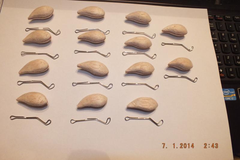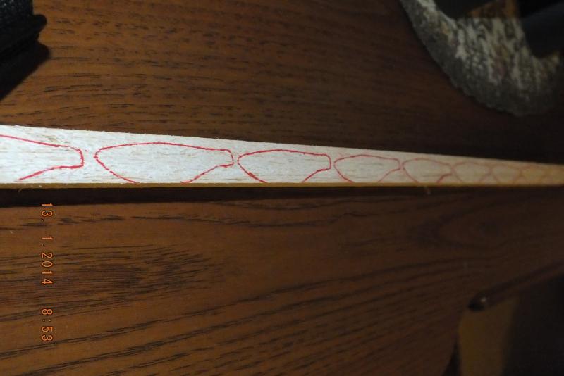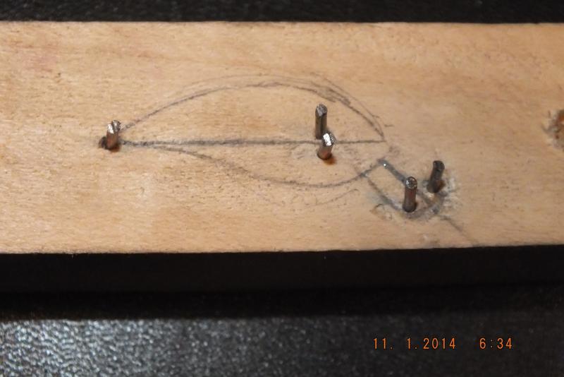 Nowe wydanie wcześniej powstałych dr-ek. Wszystkie wykonane z balsy, długość 3,5cm, waga 4,5gr, stelaż w jednym kawałku, tonące. Dzięki zastosowaniu półmatu z domaluxu kolory wyszły jakieś takie pastelowe. Muszę jeszcze dorobić im stery, bo miejsce w pudełku na okonia mają zaklepane. Dla zachowania odpowiednich odległości i kątów  zrobiłem prowizoryczny wzornik do stelaży.