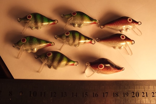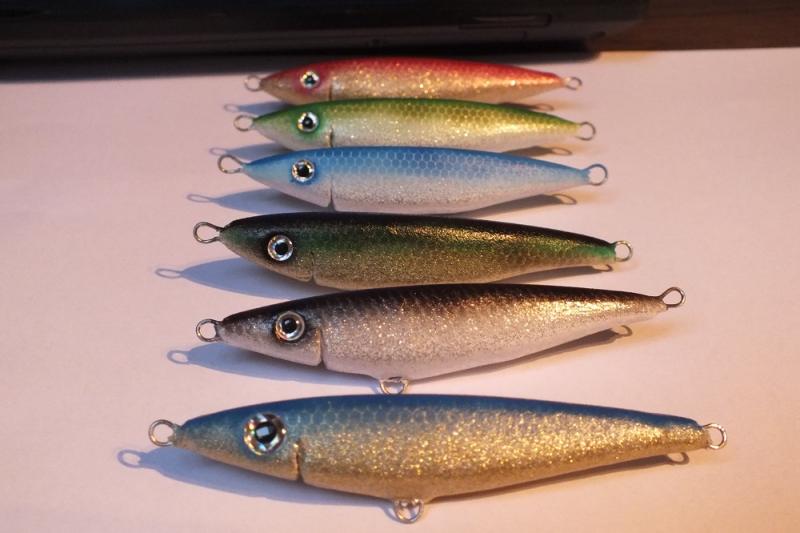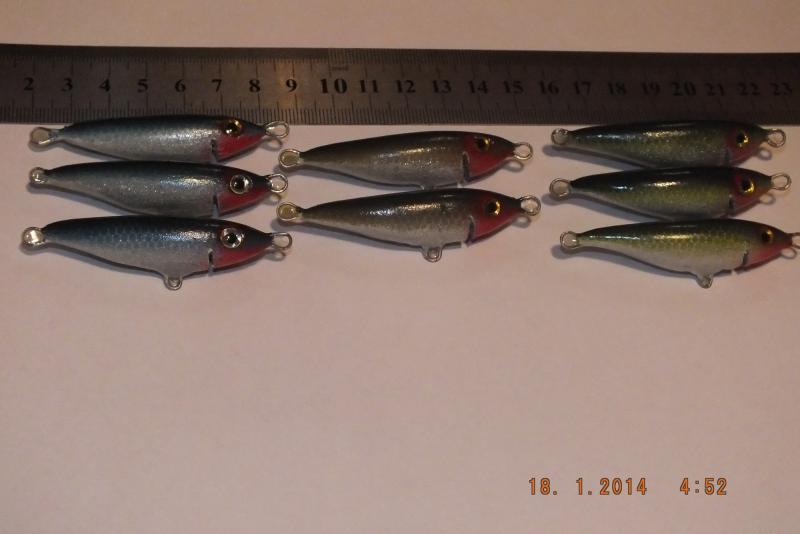 Przedstawiam owoce ostatniej pracy są to wykonane z balsy woblerki z tzw. jajem długość około 3.5 cm waga 4.5 gr wszystkie tonące.  A także slidery wykonane z lipy oklejane na próbę wydrukiem z drukarki laserowej na zwykłym cienkim papierze o długości  7.5cm i wadzę 20gr. Muszę jeszcze popracować nad tym oklejaniem, bo może dać niezły efekt przy dość płaskich woblerach. Pozdrawiam Pablo1988