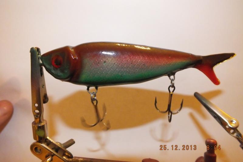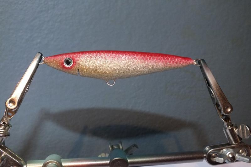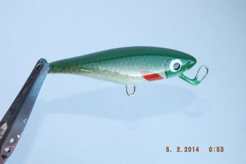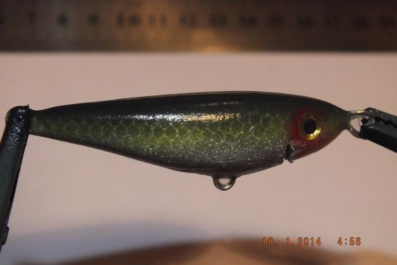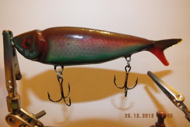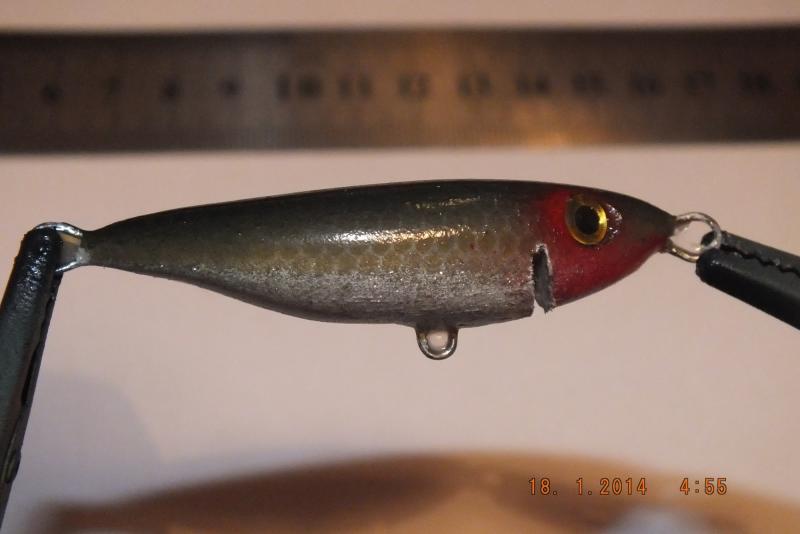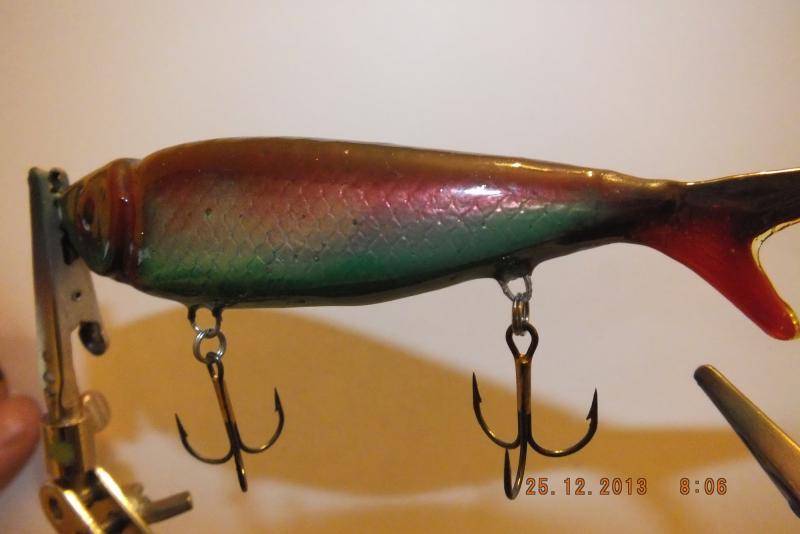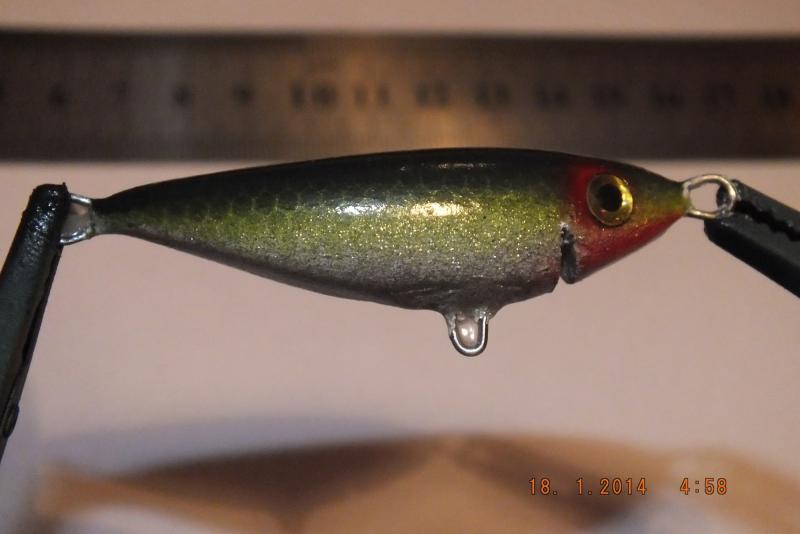Właśnie zdjąłem z suszarki 2 wcześniej rozpoczęte projekty... Sliderek jest po renowacji, gdyż za pierwszym razem odkleiła się folia samoprzylepna. Tym razem przykleiłem na patex-a folię kuchenną z wytłoczoną fakturą łuski. Wykonany z lipy długość 8cm waga 19 gr. Drugim projektem jest jerk z doklejoną płetwą ogonową wykonany z lipy długość 12cm waga 29 gr. Na próbę wkleiłem ogon wykonany z grubego poliwęglanu malowany akrylami mam nadzieję że nie wejdzie w reakcje z lakierem. Na razie wszystko jest ok zobaczymy później... Życzę Wszystkim Zdrowych i Wesołych Świąt. Pozdrawiam Pablo1988
