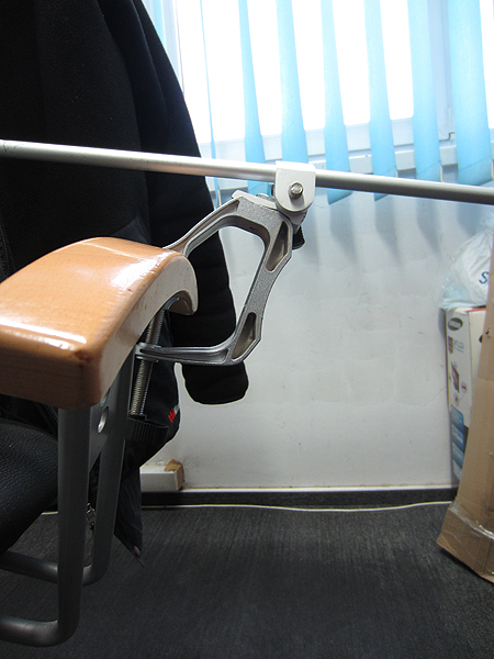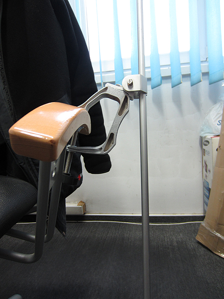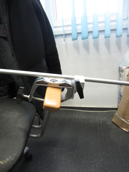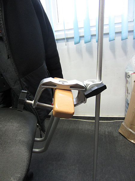 Wykorzystalem porecz fotela jako takie zamarkowanie burty lodzi - na pierwszych 2 zdjeciach widac jak to dziala, gdy sprawa jest prosta(chyba ze lodka nie taka) - mocowanie imadla w poprzek burty, nastepnie jak chcemy poplynac szybko dalej podnosimy...