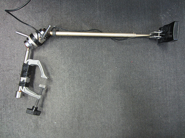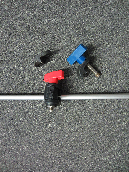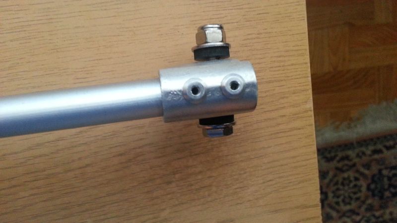 No, udalo mi sie znalezc czas....wiec na 1 ogien wynalazek... . Tutaj zostalo tylko imadlo z konstrukcji kupionej, rurki i reszta to juz moj pomysl. Wykorzystalem uklad 2 gniad mocujacych niegdys jakas aparature - te wajhy zaciskaja glowki zakonczen regulujac wyhylenia do kata prawie 180st kazda. To daje mozliwosc ustawienia przetwornika prostopadle do powierzchni wody w kazdej sytuacji, warunkiem jest mozliwosc (w ogole) pewnego zamocowania imadla.