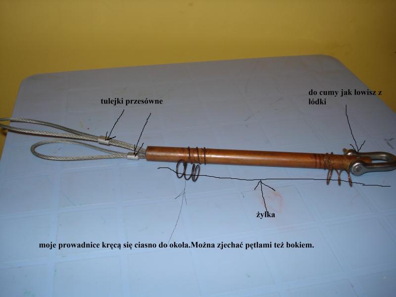 gryzon Opublikowano 13 Stycznia 2014 Zgłoś Udostępnij Opublikowano 13 Stycznia 2014 Udoskonaliłem odczepiacz. Ma lepszy dystans. Zamiast spiralki ze szprychy zamontowałem dużą agrafkę morską na stałe. Stawia mniejszy opór. Sięgam za środek rzeki z palcem... i nie spada przy akcjach zorganizowanych - różnych.kolego pokaż fotkę jak to wygląda bo na naszej odrze to ciężko coś daleko wysłać. pozdrawiam Cytuj Odnośnik do komentarza Udostępnij na innych stronach Więcej opcji udostępniania...