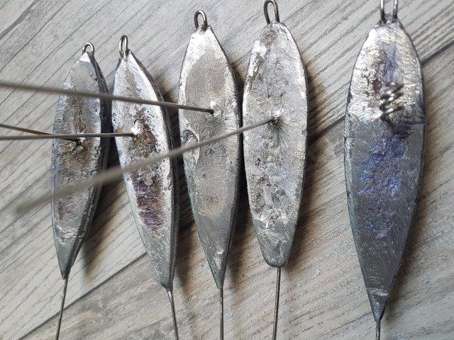 zbyszekp Opublikowano 1 Kwietnia 2020 Zgłoś Udostępnij Opublikowano 1 Kwietnia 2020 WitamPo przeczytaniu wątku stwierdziłem, podzielę się swoimi doświadczeniami w większości z oparciu o rzeki trociowe nad którymi jak wiadomo, wyczepiacz się przydaje. Generalnie po kilku modyfikacjach mam wg mnie wzór bardzo dobrze działający, oto szczegóły.1. W zależności od wagi ( mój standard to 180 g) formę do wyczepiacza robimy w gipsie budowlanym odciskając w nim spidolino do połowy. Aby uzyskać 180 g potrzebujemy spido 35g analogicznie mniejsze/większe do innych gramatur.2. Do formy kształtujemy drut nierdzewny grubości 1,5 mm ( ja uzyskuje ten drut z trzepaczki do jajek zakupionej w Auchan za 3 zł, w niej jest 8 drutów do wycięcia). Drut wyginamy zostawiając oczko z tyłu długa część ma wychodzić do przodu, a krótsza w 1/3 odczepiacza ma wychodzić pod katem 90 stopni. Dla pewności przebiegające w środku odczepiacza druty związuję miękki drutem 0,8 mm.3. Formę zalewamy ołowiem z odzysku wulkanizacyjnego wkładając do niej wyprofilowany drut. Z uwagi na masę ołowiu drut trzymamy za górną część kombinerkami przez 3-4 minuty do zastygnięcia ołowiu.4. Następnie trzymamy jeszcze kilka minut w formie i wyciągamy do ostygnięcia. 5. Szlifujemy pilnikiem krawędzie i inne powstałe nierówności. 6. Kształtujemy przednią część druta jak na zdjęciu ( oczko w drucie musi łapać agrafkę, krętlik lub całą przynętę) 7. Z części górnego druta formujemy sprężynkę.8. Gotowy wyczepiacz używamy przekładając żyłkę przez przednią cześć ( otwieramy agrafkę) plus przekręcamy przez sprężynkę górną. Odczepiacz na mocnej plecionce posyłamy do przynęty na napiętej żyłce/plecionce najlepiej podnosząc dodatkowo wędkę w celu uzyskania lepszej szybkości urządzenia. 9. Do kompletu potrzebujemy mocnej plecionki a najlepiej materiału na przypony sumowe. 4 Cytuj Odnośnik do komentarza Udostępnij na innych stronach Więcej opcji udostępniania...