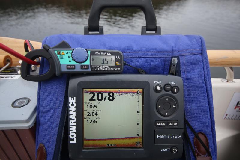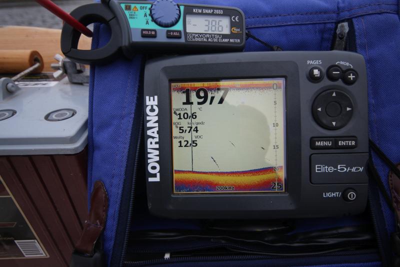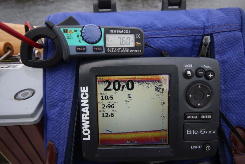 Może komuś się przyda,taki materiał poglądowy.Pomiar prądu w stosunku do prędkości.Silnik to Minnkota C2 45lb z dołożonym maxi,łódka 4 m +2 osoby ,masa całkowita około 400 kg(szybko licząc).