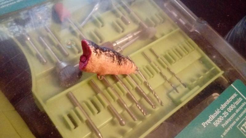 Drugą jest najbrzydszy wobler jak stworzyłem. Okazało się że korek od wina jest niewdzięcznym materiałem podczas ręcznej obróbki.