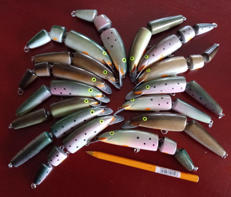 Prezentuję kolejny mniej znany model woblera. Wobler wykonywany od kilku lat nazywany ogólnie pod nazwą "Nocna sandaczówka"  jak wiele moich modeli ,żeby usystematyzować co jest co ,ten model nazywa się "Płaska dziewiątka ". Rzeczny model śuper sprawdzający w nocnych połowach sandaczy.Nie jest jakiś super ciężki ale dzięki płaskiej konstrukcji pięknie szybuje bez koziołkowania .Szybka dobrze wyczuwalna na kiju akcja ogonowa . Generalnie model uniwersalny ,chętnie gryzą go szczupaki czasem bolenie .Warty polecenia.