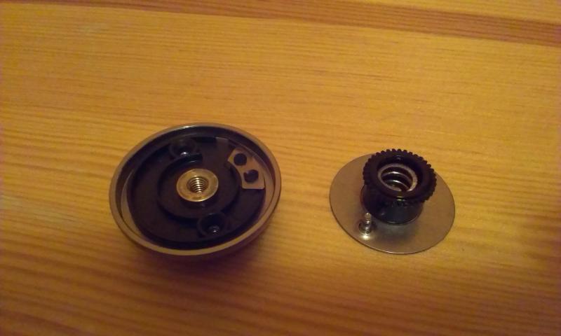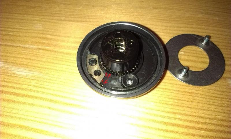 Mediam Opublikowano 16 Maja 2013 Zgłoś Udostępnij Opublikowano 16 Maja 2013 Dzisiaj doszła do mnie kupiona na Allegro Okuma V30a.Stan kołowrotka jak to najczęściej bywa na Allegro miałbyc idealny wizualnie i technicznie.No ale miałbyć a nie jest.Wizualnie tylko dwa drobne i mało widoczne obicia więc tragedii nie ma ale za to pokrętło hamulca na szpuli nie ,,terkocze" i nie blokuje się przed zbytnim luzem i odkręceniem się od osi.Rozebrałem to pokrętło i wydaje mi się że jest tam urwana blaszka która miałaby wystawać z elementu który na zdjęciu oznaczyłem cyfra 1 i przylegac do elementu z plastikową zębatką 2 .Dobrze mi sie wydaje czy w Okumach co innego odpowiada za ten dziwięk i blokowanie pokrętła ? Cytuj Odnośnik do komentarza Udostępnij na innych stronach Więcej opcji udostępniania...