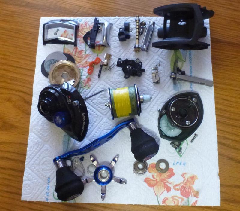 jbk Opublikowano 19 Maja 2013 Zgłoś Udostępnij Opublikowano 19 Maja 2013 Nie dawno założyłem o podobnym tytule wątek z kołowrotkiem stałoszpulowym . Dostałem kilka privów które pokazały że warto było bo kilka osób się odważyło serwisować swoje maszynki. Pogoda nie dopisuję więc postanowiłem przesmarować dwa Toro. i przy okazji kliknąc kilka fotek ,może znów rzesza osób dbających we własnym zakresie o swoje młynki się powiekszy.Sesję rozbieraną zaliczył Revo Toro NaCl 51 - kilka razy już był nad wodą. Multiplikator został rozebrany i dokładnie umyty.Przedstawię najwygodniejszą kolejność składania. Pierwszy montowany jest spust. Na pustej ramie jest łatwy dostęp do wkrętu. Wszytkie elementy które w czasie pracy współpracują ze sobą a nie biorą udziału przy rzucie smaruję smarem. Napęd wodzika który jest sprzężony ze szpulą w czasie rzutu jest oliwiony. Wałek na który jest zębatka z hamulcem jest na łożysku otwartym . W otwór w którym jest osadzone aplikuję smar. W Abu nie ma otworu do smarowania jaki jest w Shimano. Kolej na elementy działające ze spustem. Smaruję smarem. Sprężynki montuję najpierw w elementach plastikowych a po ich przykręceniu przy pomocy wąskich szczypiec końce sprężynek wkładam w otwory w ramie. Abu jest wyposażony w mocny wielotarczowy hamulec 22lb. Montuję go bez smarowania. Został tylko pinion gear i wnętrze multika będzie złożone. Łożysko oporowe obficie smaruję oliwką. Łożysko w docisku szpuli wypełniam smarem . Jest obustronie odkryte. Muszę sprawdzić ile by kosztowała wymiana odkrytych łożysk na uszczelnione silikonową uszczelką. Może pokuszę się o wymianę. Montujęc szpulę warto chwilę się pobawić i zsynchronizować wodzik ze szpulą. Czas na gwiazdę hamulca i korbę. Są dwie pary sprężynujących podkładek. Należy je złożyć w ten sposób (). I tak możemy spędzić deszczowy dzień nie tracąc kontaktu z naszym hobby 1 Cytuj Odnośnik do komentarza Udostępnij na innych stronach Więcej opcji udostępniania...