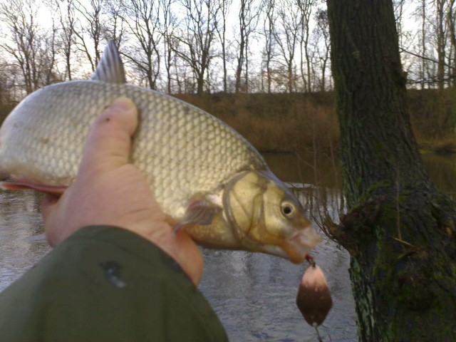 I ja dzisiaj przy okazji polowania na trotkę dorwałem jazia. Wziął z pod krzaczka na wobler trociowy ok 7.5 cm tzw. flagowca. Ryba miała 40 cm i była grubiutka, szkoda że nie trotka bo to były zawody trociowe ale i tak jaz okazał się jedyną złowioną rybą imprezy ( ale jej nie brałem i pływa dalej w wodach Iny - no kill :mellow: )