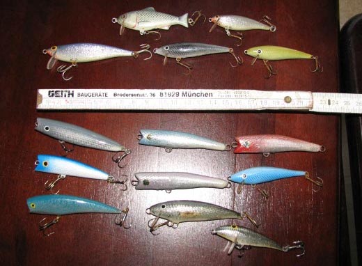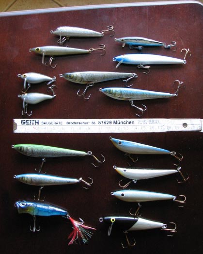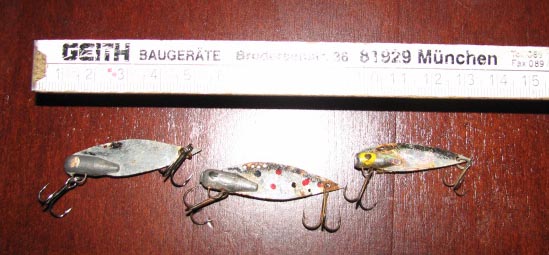 pirania74 Opublikowano 5 Stycznia 2008 Autor Zgłoś Udostępnij Opublikowano 5 Stycznia 2008 Zgodnie z obietnicą wstawiam fotki swoich przynęt boleniowych - najłowniejsze, te na które również łowiłem oraz te, które mam zamiar sprawdzić w sezonie 2008. Nie są to wszystkie, mam zamiar sprawdzić woblery Dorado i Rapala. Waga przynęt waha się pomiędzy 7 a około 30 g. Zacznę od najłowniejszych: Biały bezsterowiec łomżyński był najlepszy - 80 % złowionych na Wiśle boleni Cytuj Odnośnik do komentarza Udostępnij na innych stronach Więcej opcji udostępniania...