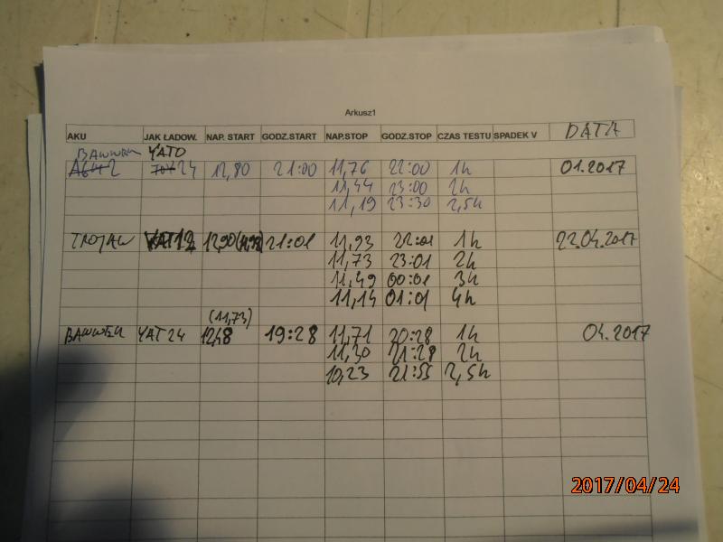 Roczny Trojan po 4 godzinach 11,50 V a w tym roku 11,14V.