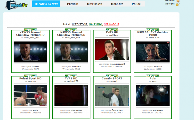 godski Opublikowano 28 Listopada 2015 Zgłoś Udostępnij Opublikowano 28 Listopada 2015 (edytowane) Może tutaj: http://meczlive.com/stream-6/ U mnie nie tnie tu i w tym co podałem wyżej też.Kliczko nie tnie. KSW na WEEBTV. A to nie wiem, ja mam 3 streamy. W takim razie sory za polecenie, mi zawsze dobrze to śmiga. weeb.pngU mnie widoczny tylko jeden. Spoko. Dzieki.Polsatu Sport nie ma wcale. Może to zależy od kraju? A co najgorsze nie tnie z powodu słabego łącza. Zmieniłem na LTE na chwilę. 28 MBps i jeszcze gorzej tnie. Komp nówka. Edytowane 28 Listopada 2015 przez godski Cytuj Odnośnik do komentarza Udostępnij na innych stronach Więcej opcji udostępniania...