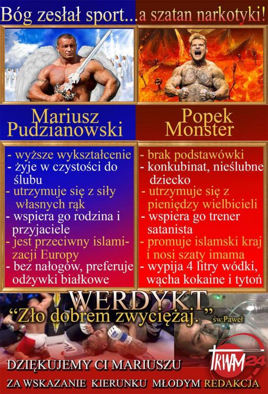 PaNeK Opublikowano 5 Grudnia 2016 Zgłoś Udostępnij Opublikowano 5 Grudnia 2016 A ja czekam na KSW 40 Popek vs NajmanPopek na Najmana, mistrza K1 federacji WKU? Zdecydowanie za skromne progi ... dopiero jak założy własną federację i zdobędzie pas w walce z własnym cieniem będzie godzien by stawić czoła mistrzowi ... 4 Cytuj Odnośnik do komentarza Udostępnij na innych stronach Więcej opcji udostępniania...
