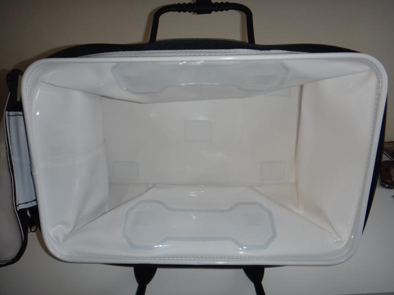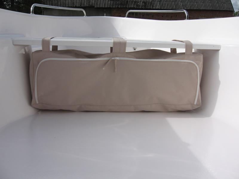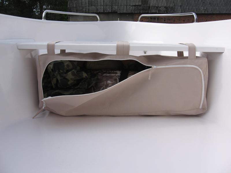 ) moją torbą. Po długim poszukiwaniu i kombinowaniu co zrobic z nadmiarem sprzętu,ciuchów ,łatwo dostępnej gaśnicy oraz zagospodarowaniu przestrzeni pod ławką postanowiłem pomęczyć dobrą koleżankę o uszycie czegos pod wymiar.Szukałem i przerabiałem to co mam czyli zwykłe torby ,pokrowce ale to nie było to,co prawda do mojej torby którą zaprezentuje na zdjęciu będzie doszyty jeszcze uchwyt na kubek / termos oraz kieszonki na jakieś duperele to ogólny zarys juz jest. Może zmobilizuje to was do nowych pomysłów na usprawnienie wędkowania i ograniczenie problemu z nieładem na łódce.Prawda jest taka,że im łódka większa tym bałagan na niej większy bo można przecież więcej zabrać... W fazie projektów jest pokrowiec na 2 wędki zawieszany na burte, bo to jest jak do tej pory ( i zawsze była ) najwięsza bolączka tego,że płynąc na łowisko czy jedząc,czy ruszając się na łodzi będzie miejsce gdzie można odłożyc kijek a za drugim zameczkiem mamy drugi-może zapasowy. Jak ktoś z was chciał by takową torbe to dzielna koleżanka uszyje kolejną. Materiał to cordura jakas nieprzemakalna ( kolorów jest kilka) gumowana od środka,nici są wodoodporne grube, które się nie rozłażą ,zameczek rozsuwany na dwie strony , no i najważniejsze ze jest to torebunia made in Poland a nie z CHRL .
