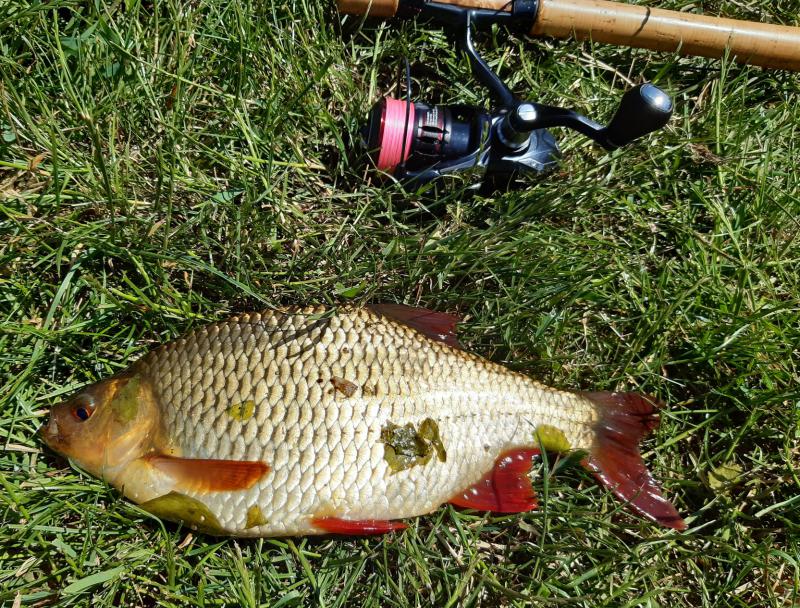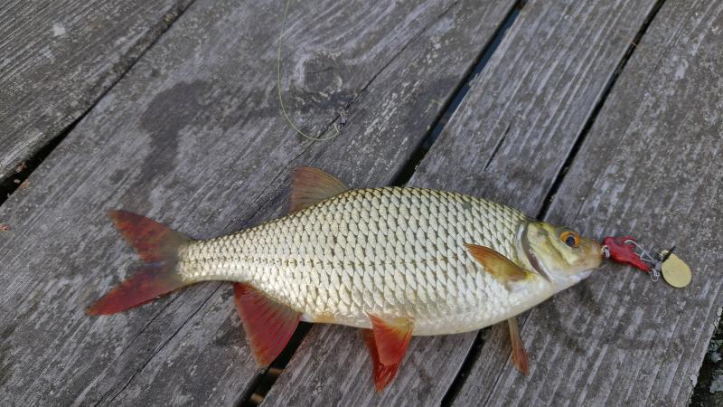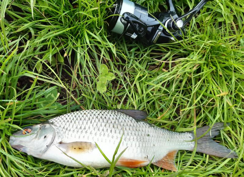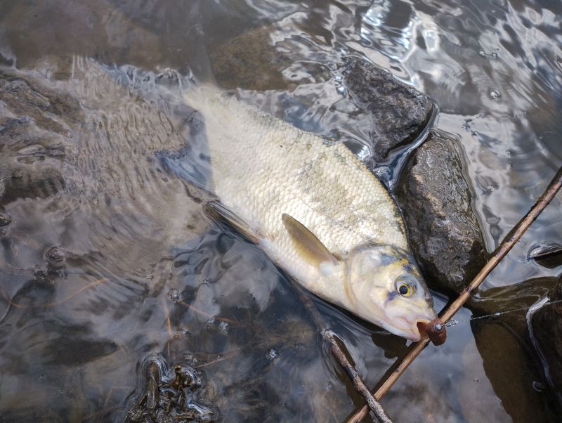 Podczas prowadzenia wciągało ją delikatnie w toń. Miałem sześć brań. Złowiłem klenia, dwie podobnej wielkości wzdręgi i leszcza.