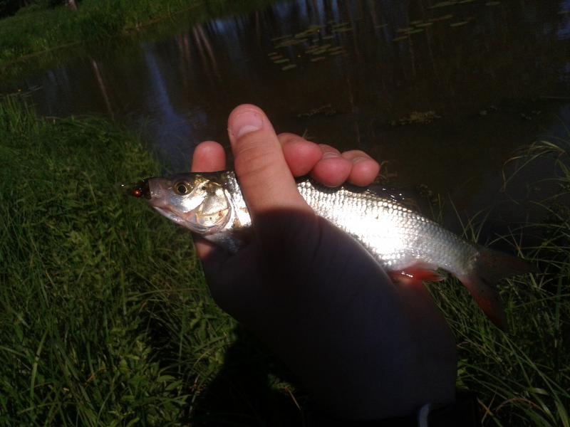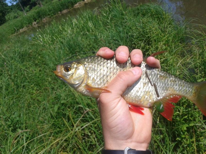 Dzisiaj późnym wieczorkiem,zauważyłem pierwsze stadka niedużych "bzdręg'' (2 się uwiesiły jedna spadła),a na ciurku trafiłem lekko poharataną weterankę z jeziora jak na razie największą z tego gatunku w tym roku,był też jazik kilka mniejszych płotek i oczywiście ''pasiaste breloczki''.Przynetą nr. 1 była ponad gramowa brązowa i czarna pijawka na haku 10 .