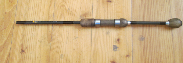 Długość całkowita: 222cm, długość transportowa: 183cm. Jest to blank+rękojeść na spigocie. Kijek ubrany w 8 szt. przelotek Pacific bay. Uchwyt kołowrotka "chowany", cały w drewnie (orzech). Drewienko nie lakierowane tylko impregnowane i zawoskowane, zatem niemal natural :) Pomimo tego, że to "wykałaczka", to moc tego blanku jest piekielna. Gdyby nie fakt, że uzbroiłem nowego moska, którego jeszcze nie rozdziewiczyłem, to zapewne Mirage w tym wykonaniu już byłby u mnie :) a kusi mnie niesamowicie :)