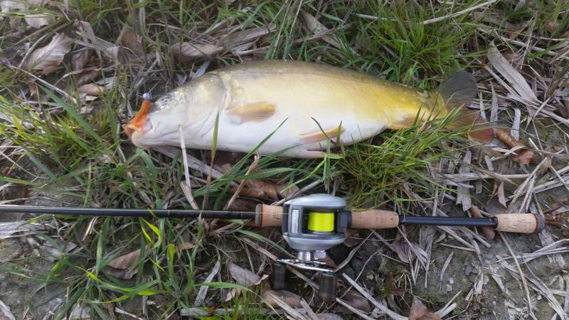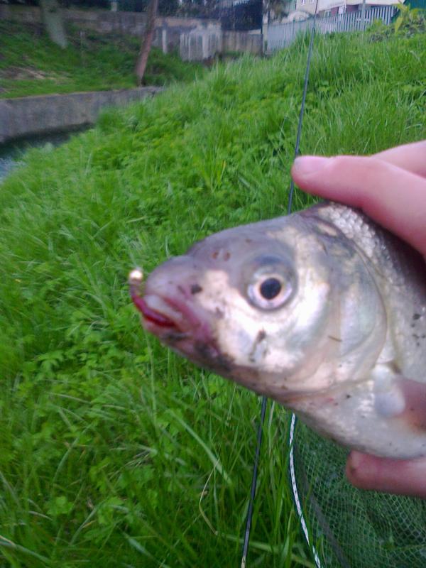 Ogólnie po powodzi ostatniego lata, w zbiorniku retencyjnym koło mojego domu spuścili wodę. A łowiłem tam szczupaki, okonie na małe obrotówki.. Ostatnio wpadłem na jakieś info w necie, że zarybyli ten zbiornik jakimś białorybem, więc idąc wieczorem po fajki i piwko do monopolowego wziąłem ze sobą spinning i moje microjigi. Jednak nie kłamali, coś tam pływa ; )