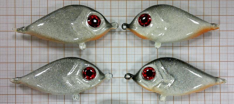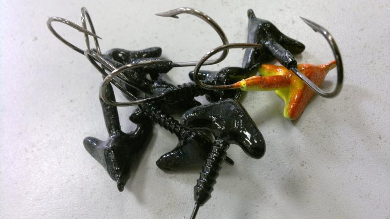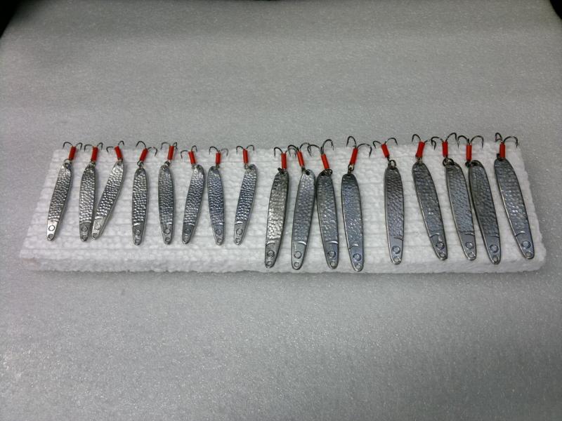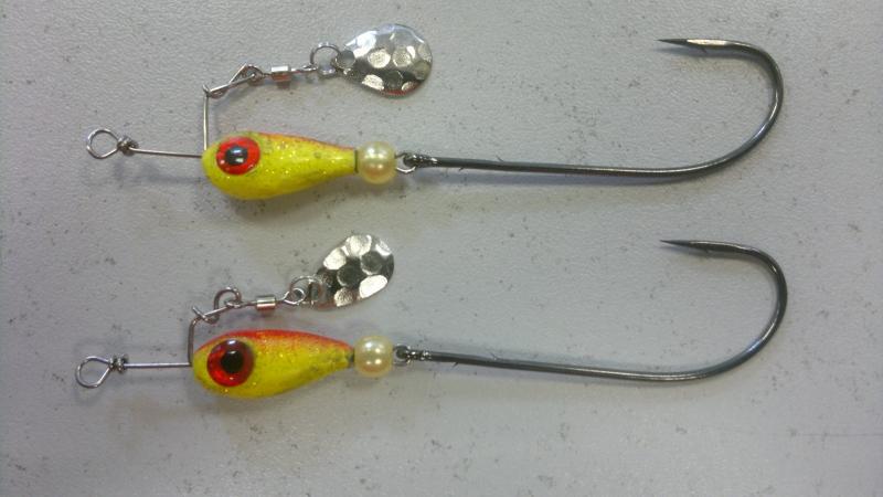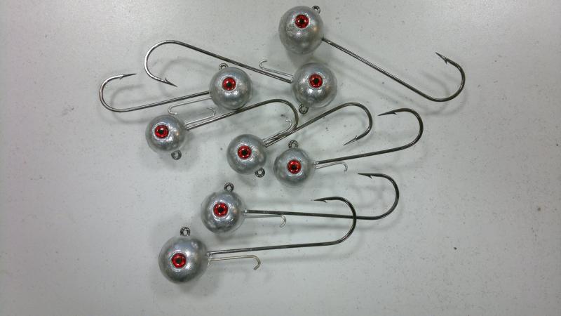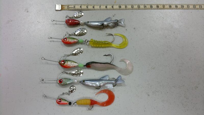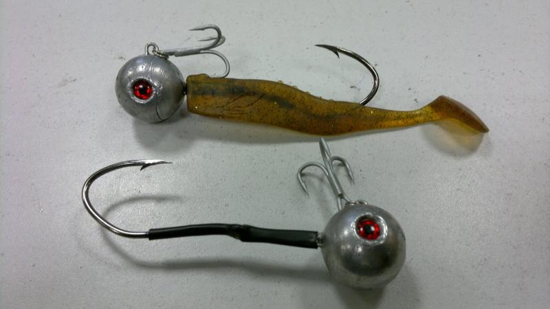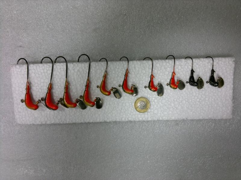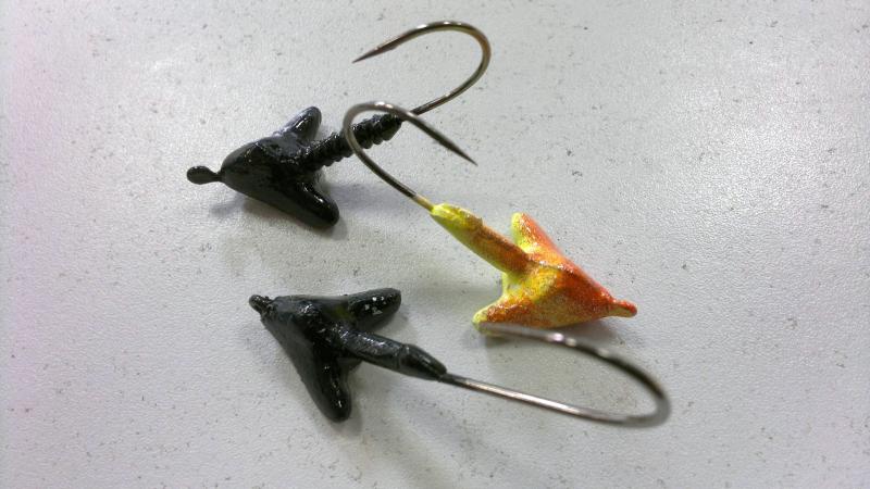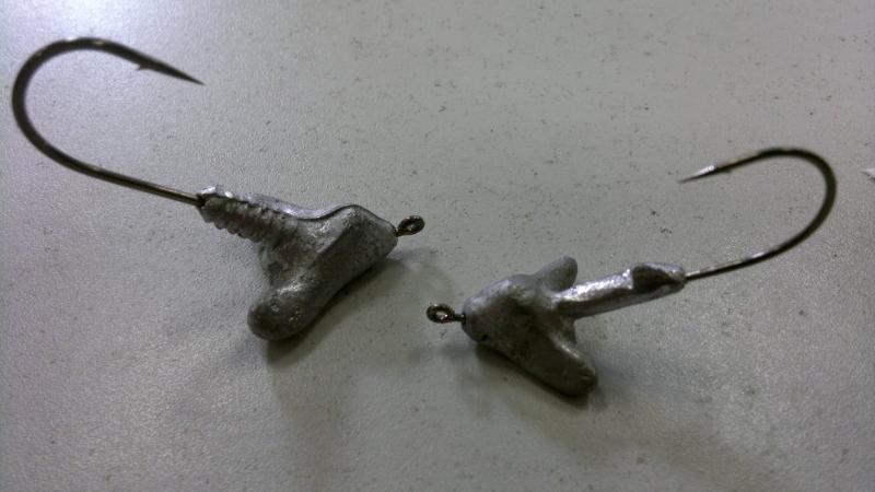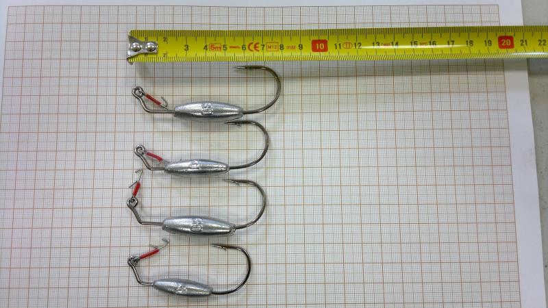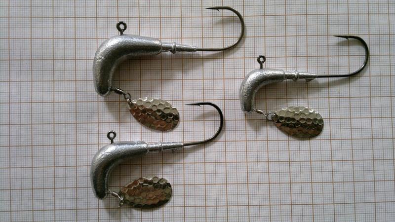 odlewane na hakach rozwartych 60 stopni ,przynęta opada równolegle do lustra wody,przy poderwaniu z dna od razu startuje
