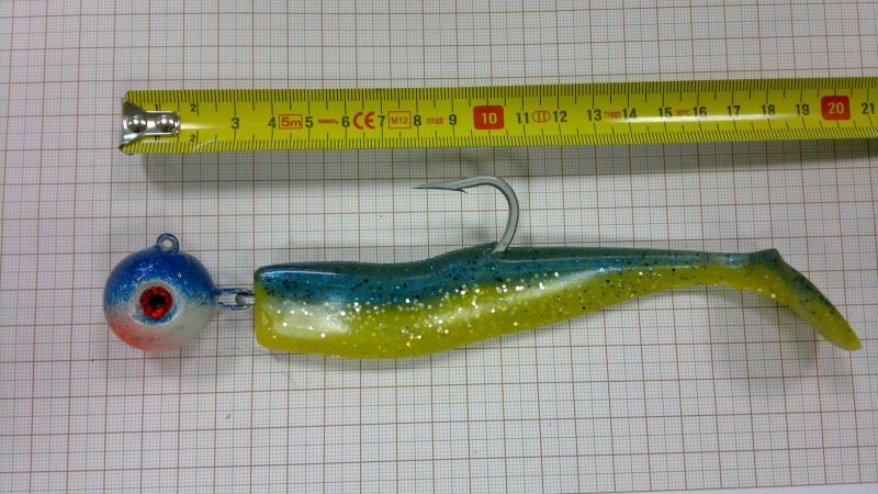 Dokładna długość od początku oczka do końca oczka 9.5 cm.waga od 12 do 12.5 gr.opadają równolegle do lustra wody lekko lusterkując,przy prowadzeniu szybszm zachowuje się agresywniej.