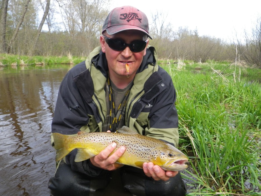 jerry hzs Opublikowano 23 Kwietnia 2012 Autor Zgłoś Udostępnij Opublikowano 23 Kwietnia 2012 Jest niedziela piekne popoludnie jestem juz z powrotem . Analizuje wczorajszy dzien ktory spedzilismy nad Bura Suka . Byl to bardzo udany dzien pelen budzacej sie zielonej wiosny i Pstragow . Tak sie dobrze ulozylo ze moglem znowu pojechac z Jackiem i Krzysiem . Niestety zmusili mnie do baaardzo wczesnego wstawania czego nie cierpie . Juz o 4.30 bylem na nogach , okolo 5.00 u Jacka i przed 6.00 u Krzysia . Szybko ruszylismy na polnoc jadac Pathfinderem Jacka ktory prowadzil swoja maszynke . Oni obaj wyspani ja zmaltretowany bo malo oko zmruzylem pozno idac spac , niestety pozno pracuje . Nawet im wstepnie zapowiedzialem ze nie bede lowil tylko robil im zdiecia ...oczywiscie klamalem zeby sie cieszyli . Przez dwa dni przetoczyly sie dwa fronty burzowe przez Wisconsin co spowodowalo ze tylko jeden kierunek byl do wyboru ...tam gdzie strumyki maja kolor starej dobrej irlandzkiej whiskey . Zaczynamy od miejsca gdzie Jackowi spadl Duzy Pstrag i teraz bedziemy szli pod prad Burej Suki . Nic sie nie pokazuje w tym miejscu dzis . Trzeba tu od razu zaznaczyc ze woda jest wysoka i powylewana na laczki w lesie . Jest niezwykle pieknie i wiosennie , z roslin az dymi po tych deszczach . Miekkosc mokrych traw powoduje ze mozna bardzo cicho podchodzic do strumienia . Jacek lowi pierwszego Pstraga ktory jest grubiutki i bardzo waleczny . Zagryza Cwikoweczke II generacji . Jacek chcial dzis odstawic Kapitana Miodka i lowic tylko ta Cwikowka II co skutecznie czynil . Ja patrzac na kolor wody zalozylem Minnowa 7 RR Salmo i zaplacil . Wyciagam w krotkim czasie dwa ladne Pstragi , potem zalowalem ze nie mierzylem tego pierwszwego . Pierwszy wzial i murujac wlazl pod krzaki , wlazlem za nim po pas ale nie moglem go ruszyc i balem sie ze strace rownowage . Pomogl mi Krzysiu ktory wsadzil noge podniosl galaz i Pstrag sie z pod niej wynurzyl . Pstrykamy ile sie da zdiec . Warunki idealne bo prawie caly czas stoimi po kolana w strumieniu i Pstragi sa w kontakcie z woda . Krzysiu w tym czasie zalicza kilka zaczepow i spadow ryb i po prostu nie idzie mu jak po masle . Wypuszczamy go troche do przodu zeby mial szanse byc Tam pierwszy . W koncu zalicza sredniaczka i juz jest lzej na duszy . Niestety Krzysiu nam sie potem okropnie rozpanoszyl i Ten Dzien nalezal zdecydowanie do Niego . Zalicza kolejno pieknego samczyka 48 , doklada Krolowa 52 i obok kilku srednich ma jeszcze bardzo grubego Ksieciunia ktory holowany na naszych oczach spada po kilku wyskokach . I tak w Tym Dniu Krzysiu nam wstapil do Klubu 50takow . Ja tez dolowilem ladnego sredniaka na Foksinusa Golda Roberta Drozdka i kilka mniejszych . Jacek jak zwykle wyciagal najwiecej , duzo mu tez spadlo w tym dwie ladne ryby ...pod koniec zalozyl swego Kapitana Miodka i nim konczyl ekspedycje . Krzysiu dwie najwieksze ryby wyciagnal na jego ulubiona worowke Blue Fox Wibrax czarna paletka w zielone kropy , lowil tez Hornetem 4 Raczkiem no i Klasyczna 5 z Pomorskich Oliwek . Zakonczylismy wedrowke i smyczenie po 19.00 i udalismy sie na Rancho zeby odpoczac , pojesc i pospac ...no i pogadac . Jacek przy piwsku Zywiec , my przy szklaneczce Crown Royalka ogromnie ucieszeni rozkladalismy szczegoly wyprawy , bran , holi , przynet do poznej nocy . Niestety wzialem ze soba pudelko z wahadelkami , wirowkami Meppsa TW od Janusza i Yoka i serce mnie zmieklo ...wybrali co chcieli . Przed wyprawa nie dalem po co maja miec fory .... . Zapach palonego drzewa , zmeczenie , woda ognista pomalutku zaczela nas utulac do snu . Na dworze okolo 0 C , mamy teraz zimne nocki ...w domku cieplutko i przytulnie ...dobrze ze mamy naszego Krzysia i nas od czasu do czasu gosci ...dzis Manitou mu nieba przychylil bo nadszedl czas na To . Krzysiu nam juz przepadl ...choroba Pstragowa nieuleczalna jest i dobrze . Wstalim pozno bo czemu tu sie spieszyc . Mycie , sniadanko , kawusia ...pelen luz . Krzysiu musial byc w domu do poludnia wiec nie planowal dzis lowienia , ja z Jackiem mielismy jeszcze jakis Strumien zbadac . Postanowilismy jednak ze odpuscimy i tez wracamy do domu . Wczorajszy dzien dal nam znowu ogromny zapas mocy do baterii . Wracalismy wiec slonecznym , zielonym Wisconsin planujac kiedy znowu wrocimy i gdzie posmyczymy . Nastepny weekend nie wolno lowic w strumieniach , obowiazuje tydzien zakazu przed oficjalnym otwarciem Sezonu Pstragowego 5 maja . Niestety w otwarcie sezonu regular juz mozna brac ryby , oczywiscie wedlug przepisow . Pojawi sie wiec amatorow tych co zra . Trzeba jakos to przezyc i poczekac az pojawia sie plemiona Moskito i czesc wedkarzy odpusci wedrowki . No to kilka zdiec z tej ekspedycyji... Krzysiu ...czy moge Ci mowic Mistrzu ?.... Tu mi wlazl pod galaz i Krzysiu mi pomaga ... Cytuj Odnośnik do komentarza Udostępnij na innych stronach Więcej opcji udostępniania...