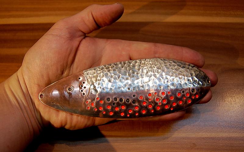 chulo Opublikowano 11 Listopada 2016 Autor Zgłoś Udostępnij Opublikowano 11 Listopada 2016 Dziś w końcu udało mi się skończyć projekt związany z wahadłówkami w rozmiarze XXL.Wiele problemów przysparzał mi temat związany z prawidłowym wykrępowaniem wahacza.Dużo obaw też miałem związanych z prawidłową pracą. Poniżej znajduje się moja największa wahadłówka 16 cm Niebawem wrzucę flm z pracą tej przynęty. 11 Cytuj Odnośnik do komentarza Udostępnij na innych stronach Więcej opcji udostępniania...