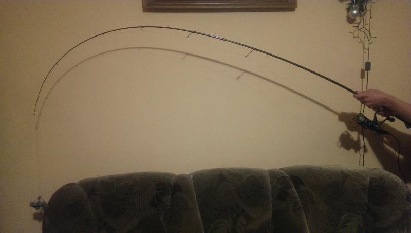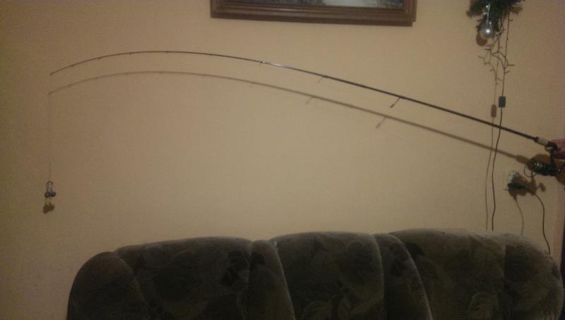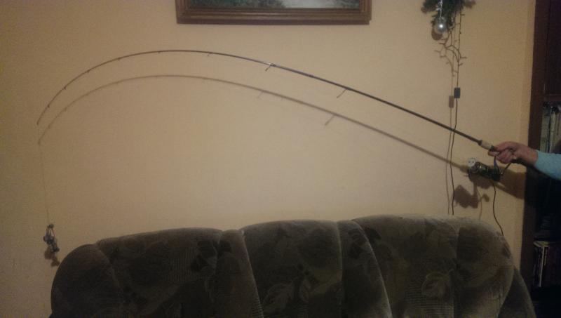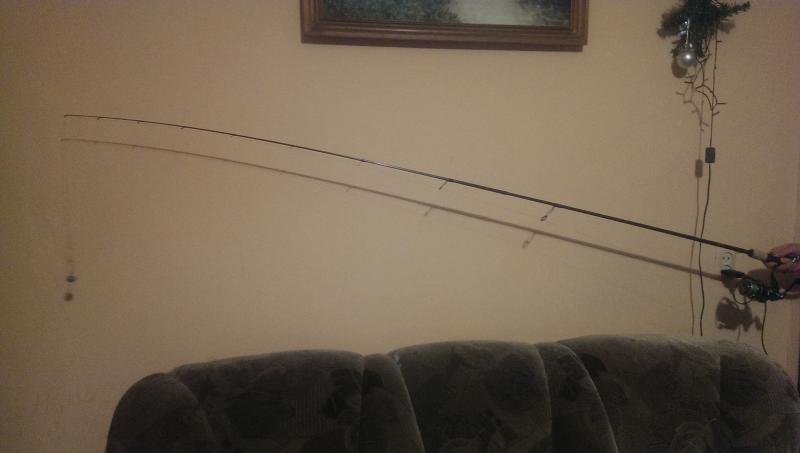 coma Opublikowano 7 Stycznia 2016 Zgłoś Udostępnij Opublikowano 7 Stycznia 2016 Żona z dzieckiem poza domem to mężowi się nudzi. Ale nie aż tak, żeby bawić się obciążnikami Wziąłem co było pod ręką (akurat nawinęła się litrowa napoczęta butelka z colą - 743g) i zrobiłem kilka fotek ugięć - może komuś się przyda. SG Parabellum Spin CC 3-16g, długość 279cm - butelka nieoderwana od podłogi: Fenwick HMXT 89M-2-F, lenght 8'9", Lure 3/8-1oz, line 8-20lb - butelka wisi w powietrzu: Okuma Black Rock, długość 2,13cm, c.w. 10-35g, power - medium, action - Fast, line 10-16lbs - butelka w powietrzu: Rozemejier Qualifier Jointed Power Jerk 190, cw. 50 - 100g743g w wisi na plecionce: A tutaj 1,5 litrowa butelka wody - dokładnie 1547g podniesione nad podłogę: 7 Cytuj Odnośnik do komentarza Udostępnij na innych stronach Więcej opcji udostępniania...