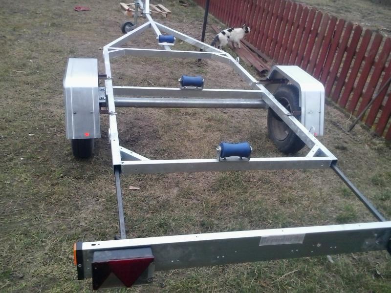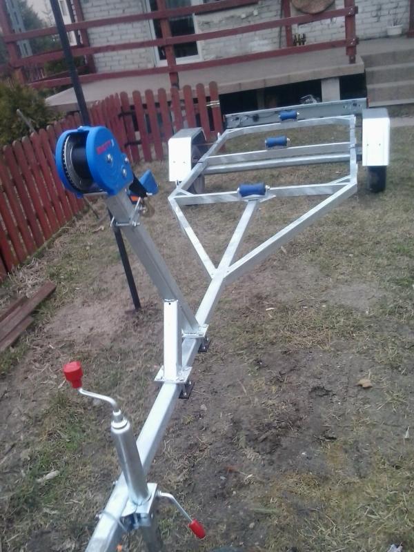 Proponuje zrobić samemu mi wyszła ze wszystkim 2400 (za spawanie zapłaciłem bo sam nie umiem) i mam taka jaką chcę i pożondną nie jakąś tam wydmuszkę) Wszystko było robione na porządnych częściach(ALKO KNOTT).Łajbę mam podobną (jakiś klon Necko).Na razie nie napiszę jak się tym jezdzi bo jeszcze trzeba wszystko poskręcać a i nie sezon na ciąganie łódki.