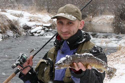 Właśnie zobaczyłem fotki z wczorajszego wspólnego pstrągowego wyjazdu z Tomkiem :huh: .Bardzo ładne.Tomek zawsze nosi ze sobą wielki plecak sprzętu. :D.I wkłada dużo serca w fotografowanie :D.Niepotrzebnie dźwigałem własny statyw :mellow:.