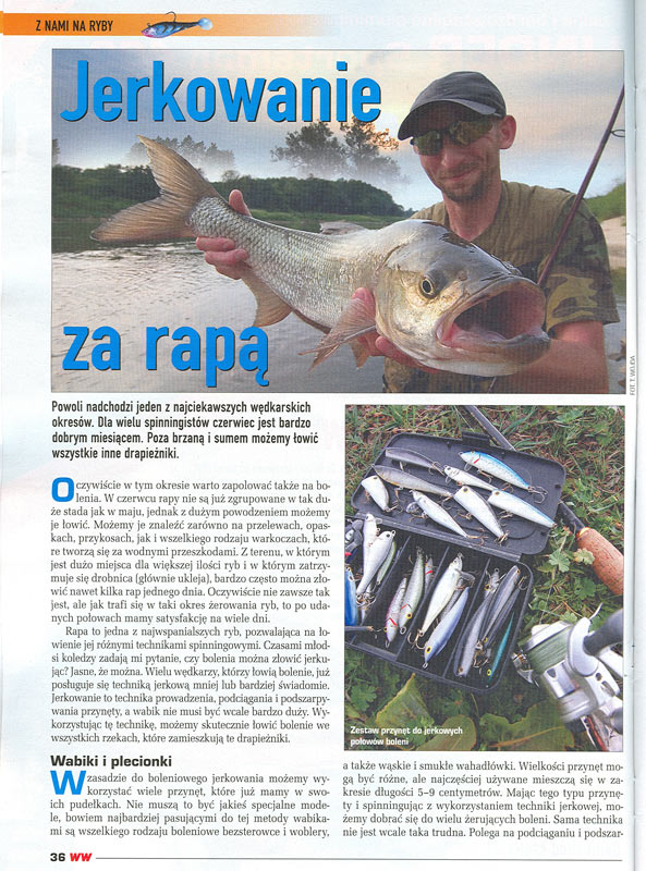 rognis_oko Opublikowano 22 Maja 2007 Autor Zgłoś Udostępnij Opublikowano 22 Maja 2007 Witajcie. Chciałbym przypomnieć, że nagrodą w konkursie na najpiękniejsze zdjęcie z boleniem było umieszczenie zwycięzkiego zdjęcia w wędkarskiej gazecie. W tegorocznym czerwcowym numerze Wiadomości Wędkarskich umieściłem jedno zdjęcie zwycięzcy konkursu - Tomka Wojdy.Na jego szczególną prośbę, w gazecie ukazało się jego inne zdjęcie z boleniem, nie to które wygrało w konkursie. Cytuj Odnośnik do komentarza Udostępnij na innych stronach Więcej opcji udostępniania...